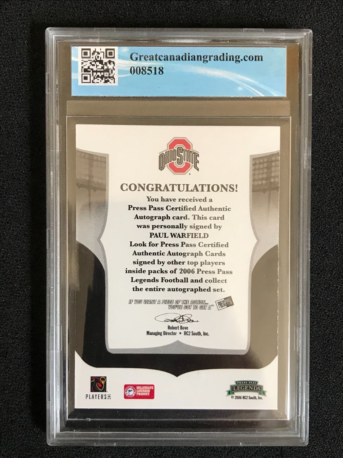 2006 PRESS PASS PAUL WARFIELD AUTOGRAPH (GCG 9)