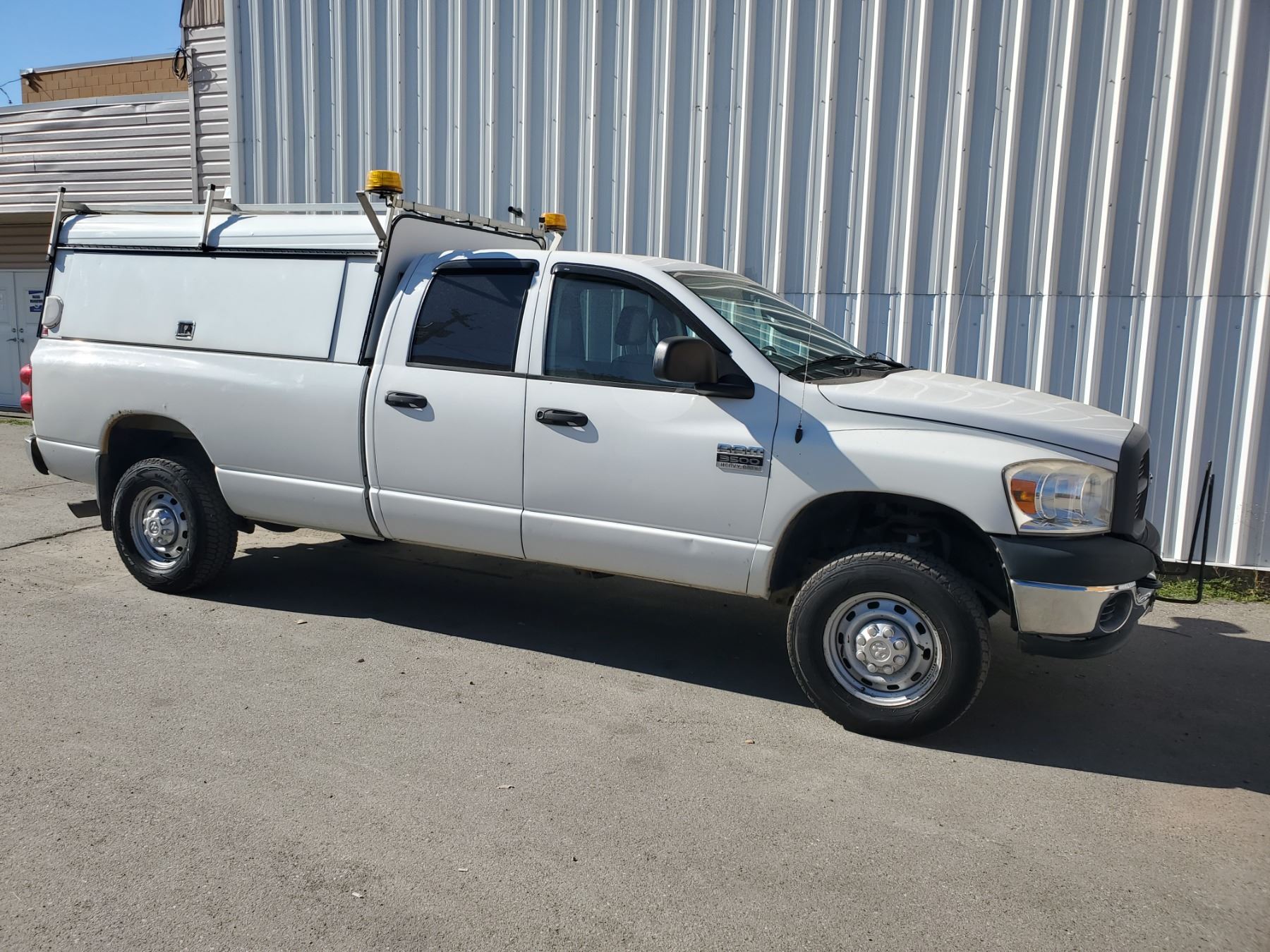 2007 DODGE RAM 3500 HD, PICKUP, WHITE, DIESEL, AUTOMATIC, VIN#3D7MX38A47G820346, 144,357KMS, RD,CD,PW,TH,PL,TW,4W,RI, DENTED BACK BUMPER, LEER CANOPY, NO ICBC DECLARATIONS