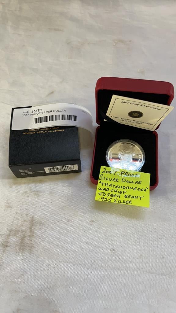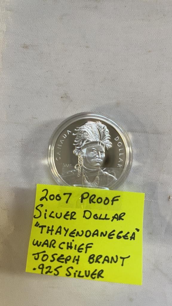 2007 PROOF SILVER DOLLAR "THAYENDANEGEA" WAR CHIEF JOSEPH BRANT .925 SILVER