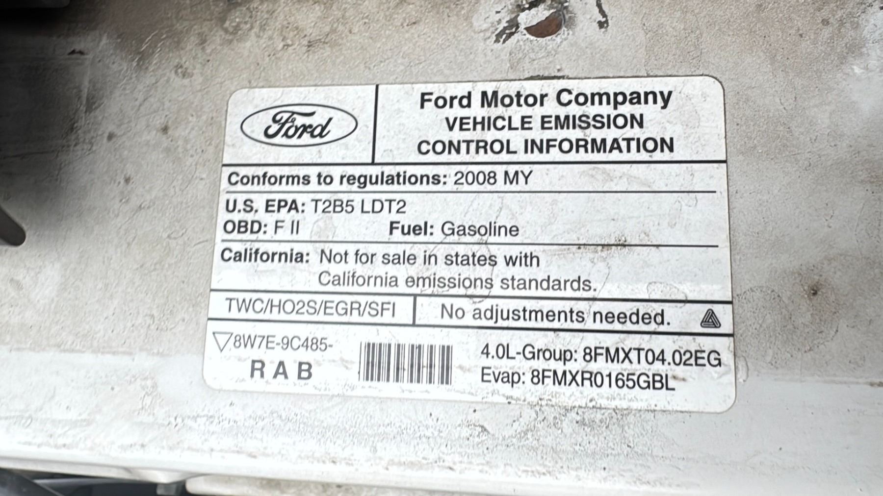 2008 FORD RANGER 4X4, 2DR PU WITH REAR HINGED DOORS, WHITE VIN 1FTZR45E48PA28346 231,039KMS, GAS (G), 4LTR V6, AUTOMATIC, HAS REGISTRATION, HAS KEYS, FEATURES: POWER WINDOWS, POWER LOCKS, AIR COND, HAS BEACON, 1 X ICBC GLASS NO DETAILS