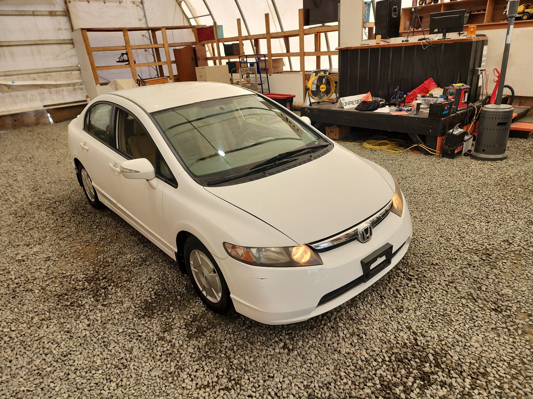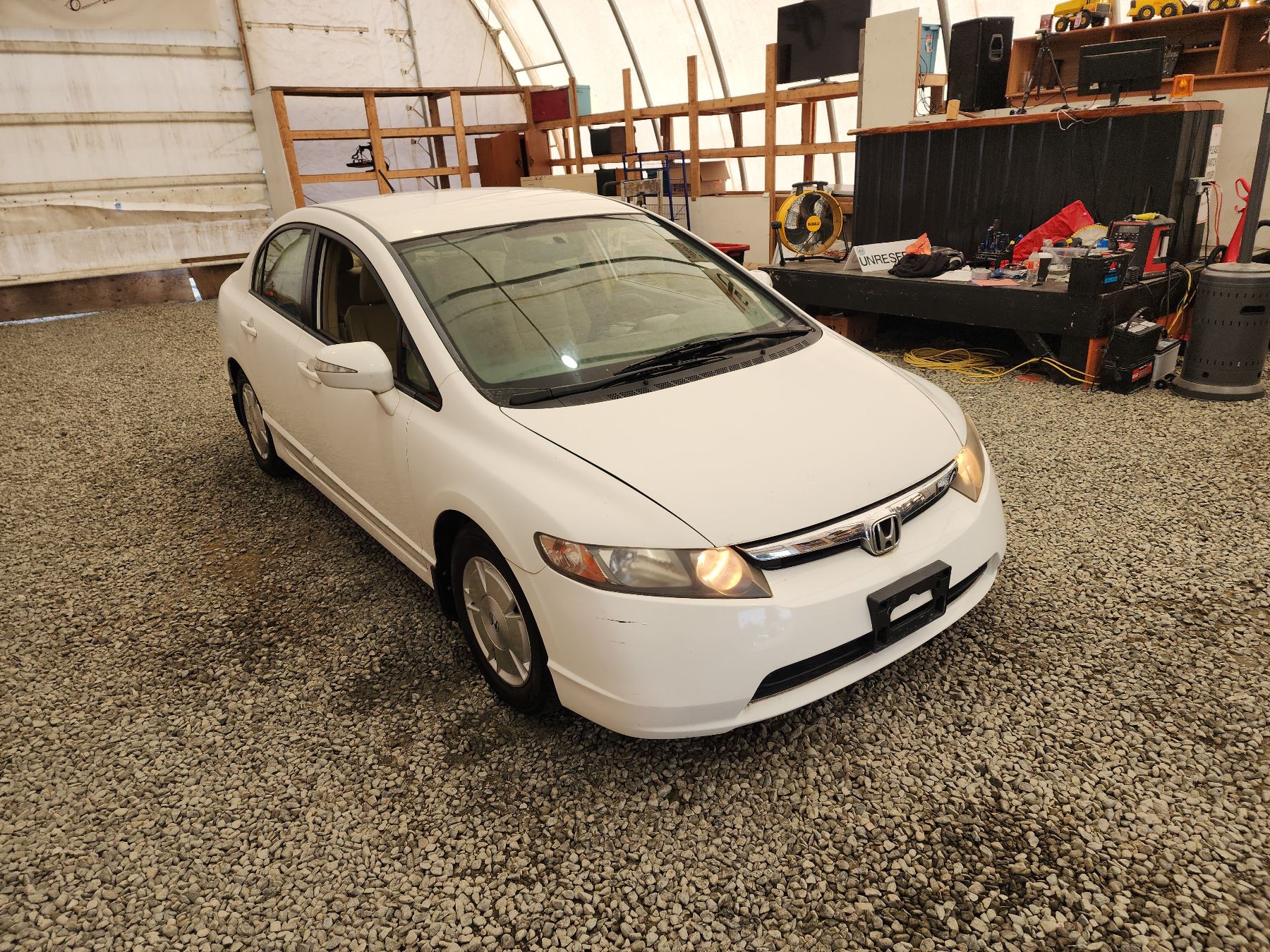 2008 HONDA CIVIC HYBRID, WHITE, 91552 MILES, FRONT WHEEL DRIVE. - D800071