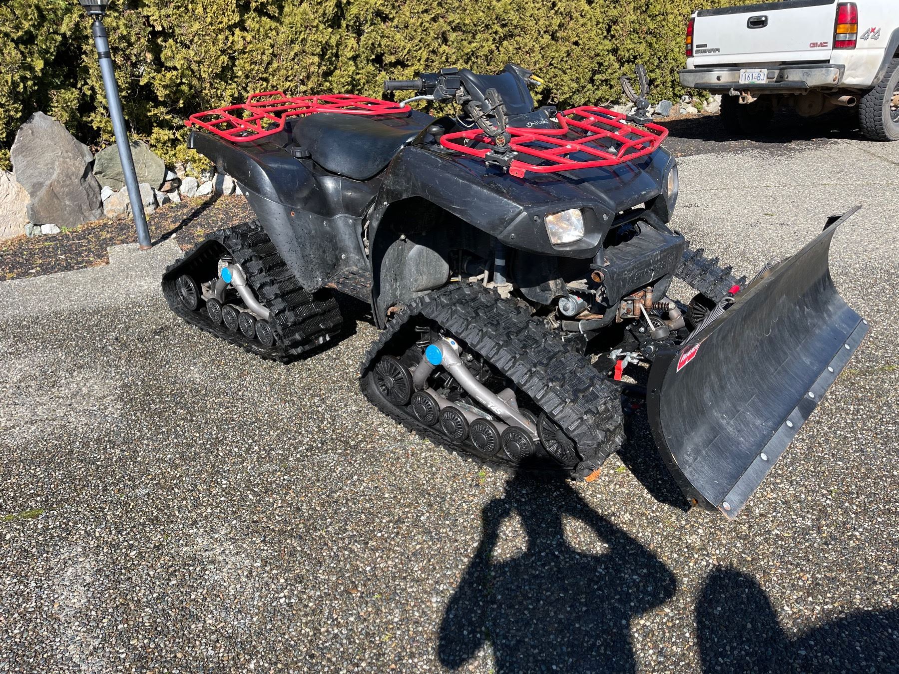 2009 KAWASAKI BRUTE FORCE 650 4x4 COMPLETE W. TRAX SYSTEM AND WORN SNOWPLOW SYSTEM, 5000KM, RUNS AND DRIVES