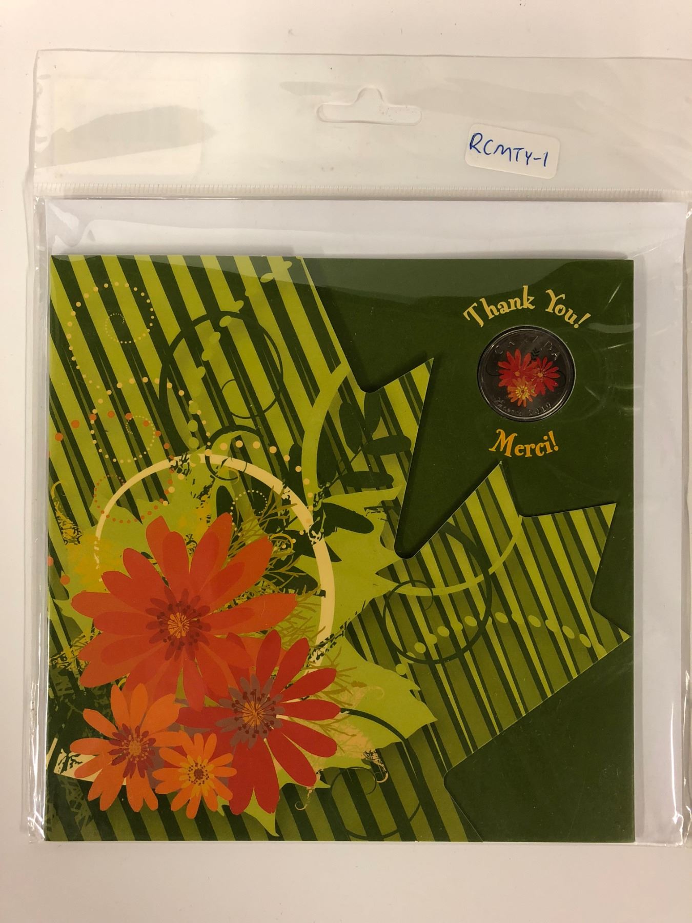 2010 ROYAL CANADIAN MINT THANK YOU CARD WITH 25 CENT COIN