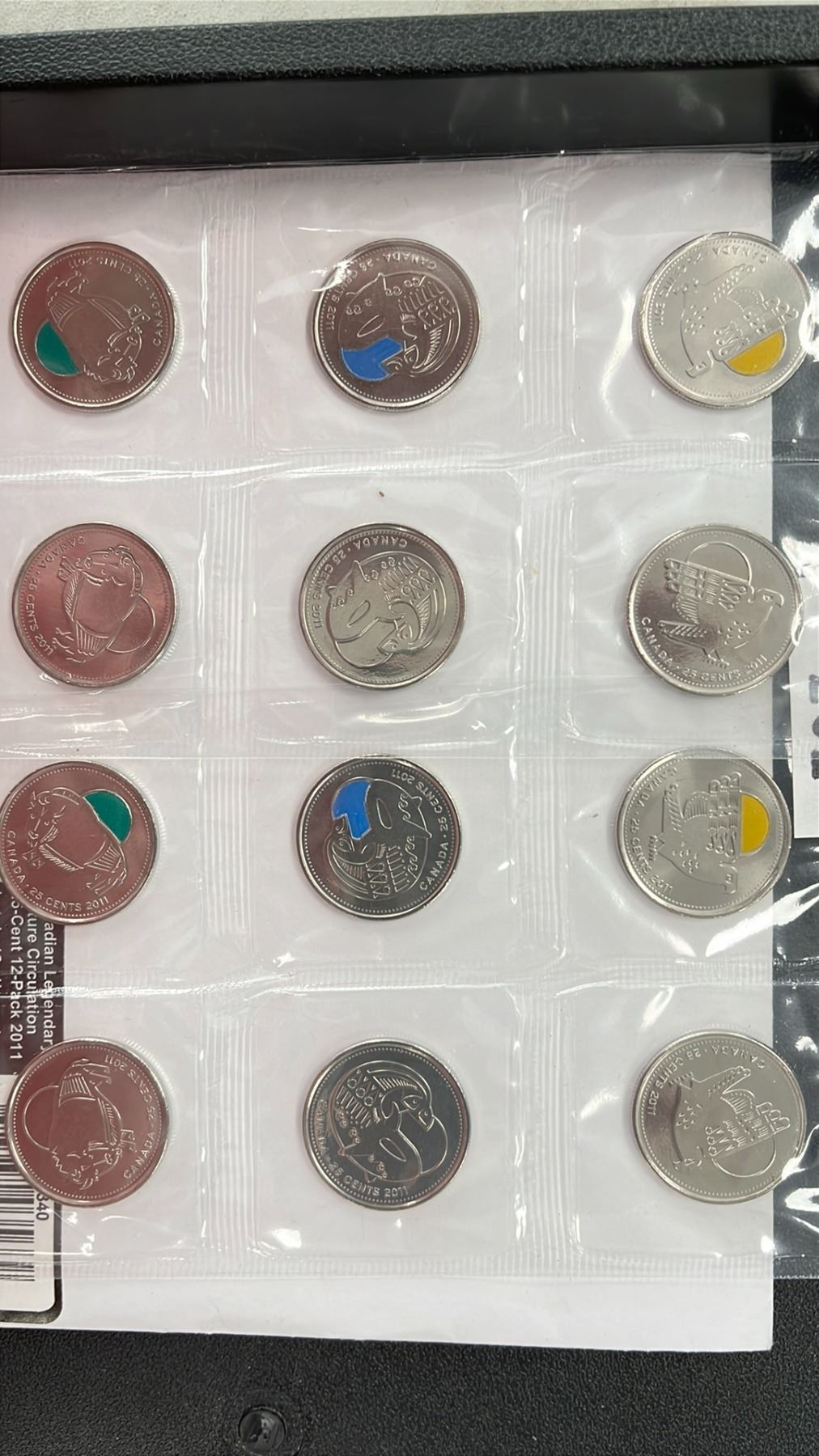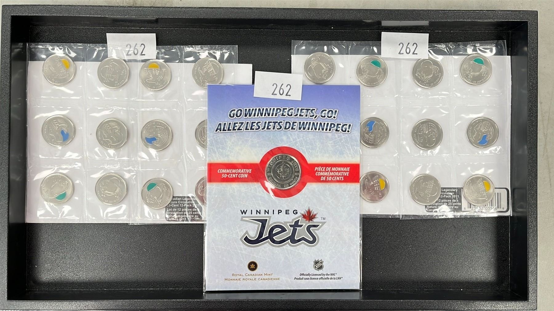 2011 CANADIAN NATURE CIRCULATION LOT OF 24 CANADIAN QUARTERS WITH COMMEMORATIVE WINNIPEG JETS $.50 COIN