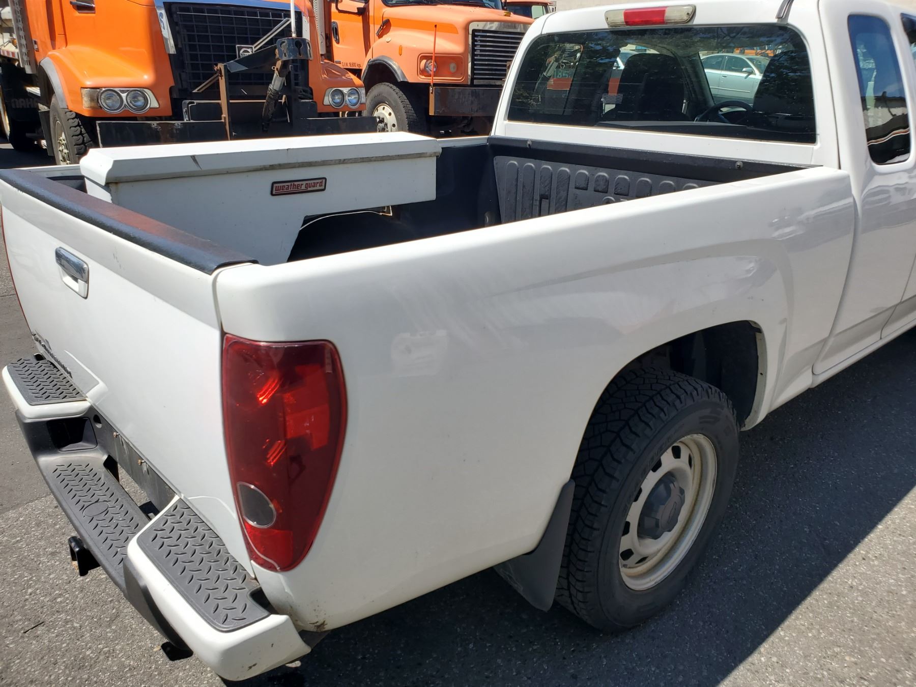 2011 CHEVROLET COLORADO LT, 4DR EXT CAB PU, WHITE, VIN #1GCESCF9XB8103437 182,725KMS, GAS, AUTO, X-CITY RD,CC,TH,TW,AC, WORK STEERING & SUSPENSION HAS BED LINER, SIDE MOUNT TOOL BOX FRONT LEFT FENDER DENTED, 2X ICBC NO DETAILS, ICBC REPAIRED DECS TTL $2,634.01 WORN STEERING AND SUSPENSION