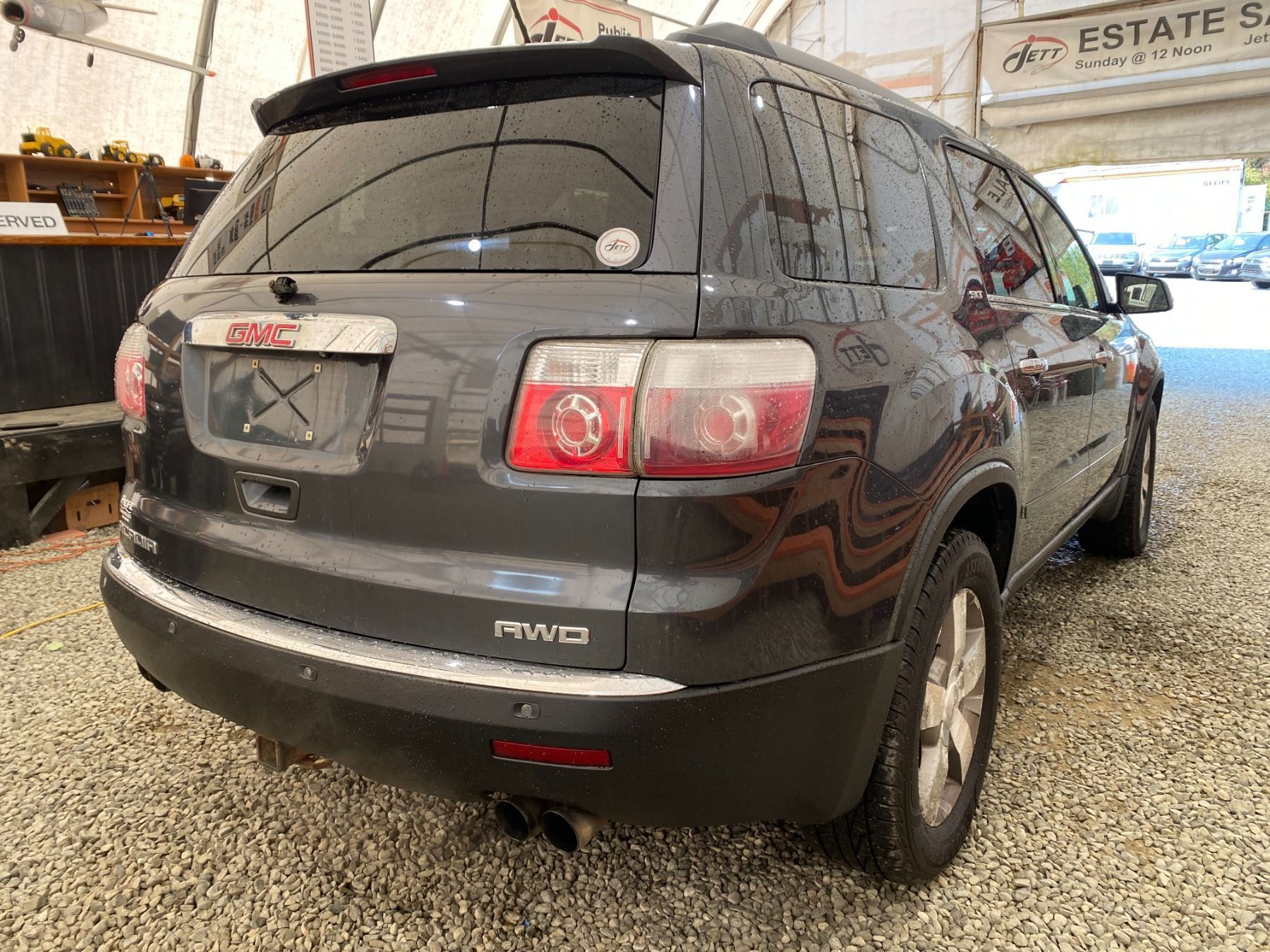 2011 GMC ACADIA, GREY, 233919 KMS, 3.6L, 6 CYLINDER, GASOLINE, AUTOMATIC WITH TIPTRONIC, TRANSMISSION, ALL WHEEL DRIVE, 7 PASSENGER. AIR CONDITIONING, POWER WINDOWS, POWER LOCKS, KEY-LESS ENTRY, TILT STEERING, CRUISE CONTROL, ALLOY WHEELS, ANTI THEFT, DUAL AIR BAGS, POWER SUNROOF, CD PLAYER, BLUETOOTH, LEATHER SEATS, POWER SEATS, HEATED SEATS, TRACTION CONTROL, DUAL ZONE CLIMATE, STEERING WHEEL CONTROLS, FOG LIGHTS, ROOF RACK, POWER MIRRORS, REAR-SEAT ENTERTAINMENT SYSTEM, SPLIT-FOLDING REAR SEATS. DECLARATIONS: NO DESIGNATIONS 2 ACCIDENTS 3 GLASS CLAIM, TOTALLING $11220. SERVICE HISTORY SHOWS25 RECORDS. AUCTION NOTES: STOCK #: D186745 1GKKVRED7BJ186745 NOT MECHANICALLY INSPECTED, NOT SUITABLE FOR TRANSPORTATION, MUST TOW.