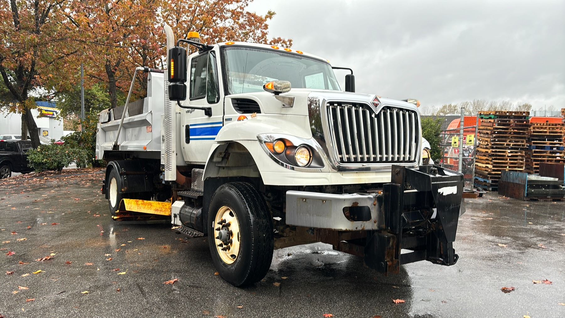 2011 INTERNATIONAL WORKSTAR WHITE VIN 1HTWKAZR2BJ387744 78,481.00 KMS, DIESEL (D), MAXX FORCE 10, AUTOMATIC, DUMP TRUCK, REGISTRATION: YES, KEYS: YES FEATURES: COMPACT DISC, DIGITAL VIDEO, CRUISE CONTROL, TILT WHEEL, 4 WHEEL DRIVE, AIR COND HISTORY: X-CITY 10,460KG NET WEIGHT, 29,937KG GVW, SCRATCHES AND DENTS ON FRONT BUMPER, SURFACE RUST ON RIMS, BELLY PLOW, FUEL TANK STRAPS, REAR BUMPER SURFACE RUST, LANGFAB BOX, BOX & TAILGATE HAVE ROCK CHIPS AND SMALL DENTS, STELLAR HYDRAULIC RAM SERIAL #GF10ZK211, COMMERCIAL FRONT PLOW MOUNT, 11' WIDE PLOW IN BOX NO ICBC DECLARATIONS