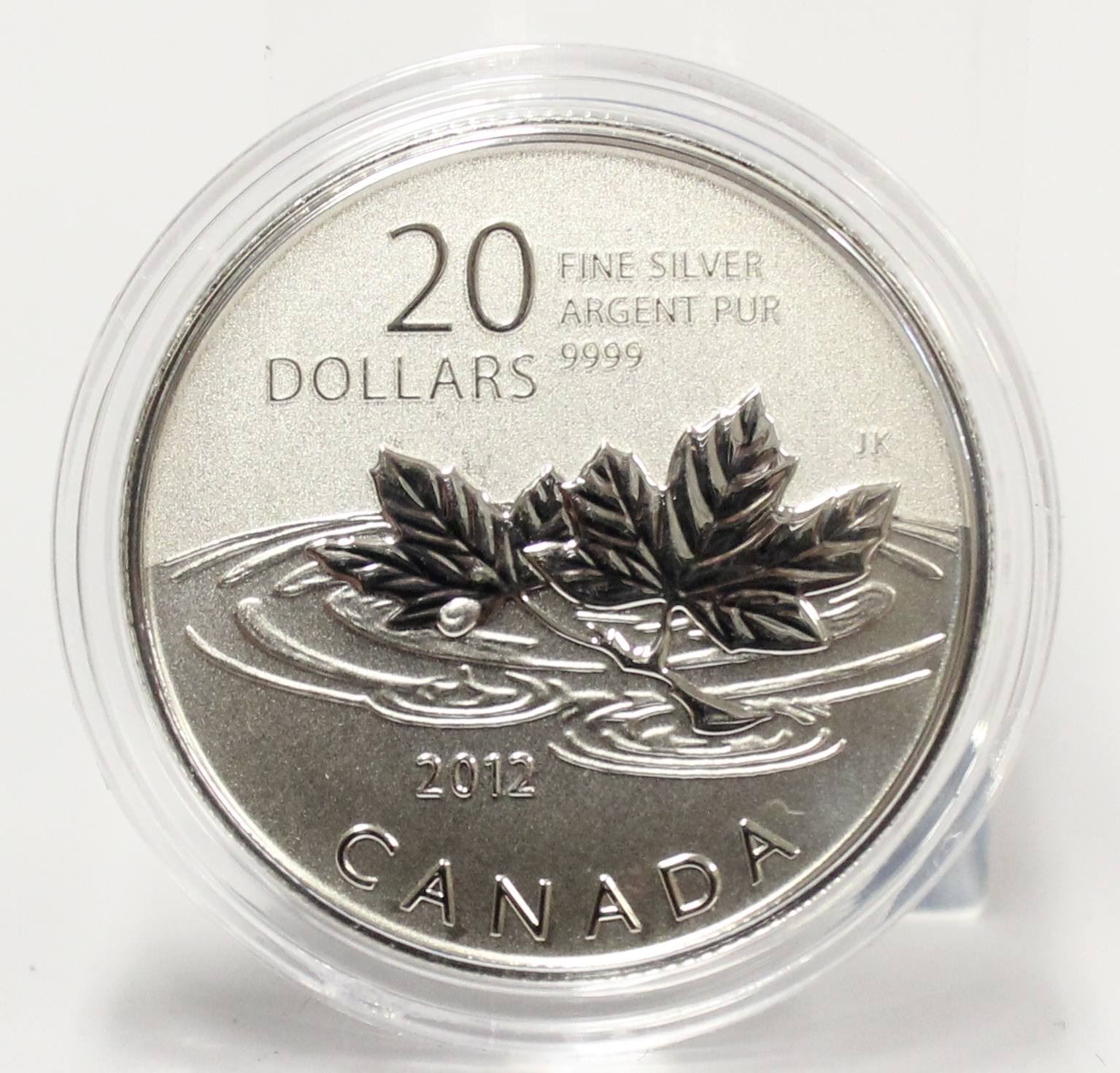 2012 $20 .9999 Fine Silver Floating Maple Leafs Proof Specimen Strike Coin