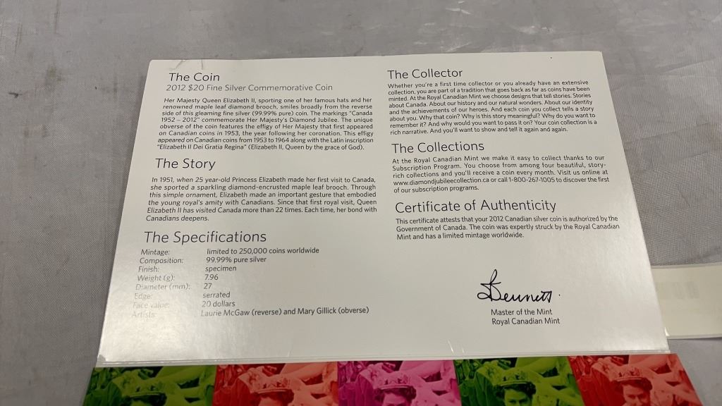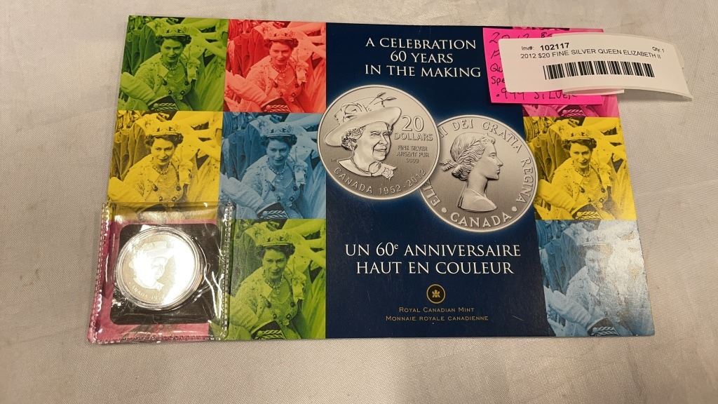 2012 $20 FINE SILVER QUEEN ELIZABETH II SPECIAL COIN 1952-2012 .999 SILVER