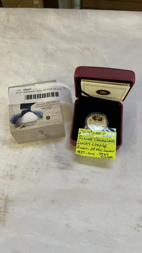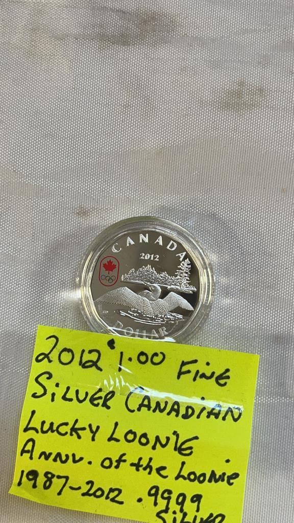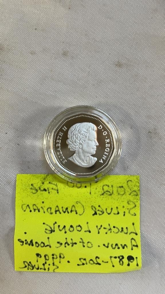 2012 CANADIAN 1 DOLLAR FINE SILVER LUCKY LOONIE ANNIVERSARY OF LOONIE .9999 SILVER
