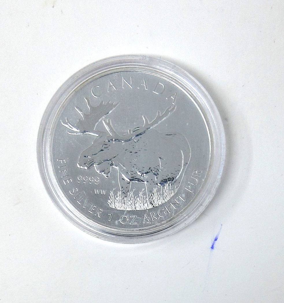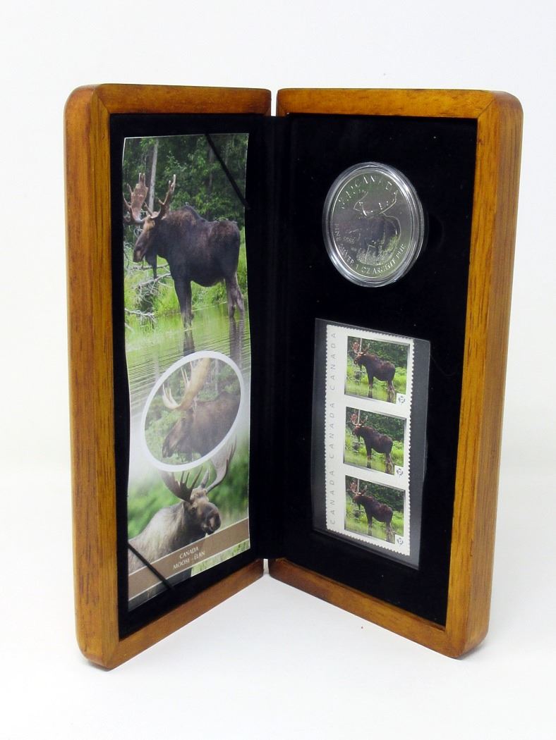 .9999 Silver. Moose $5 Coin and 3 Stamps. In collector box. Tax exempt.