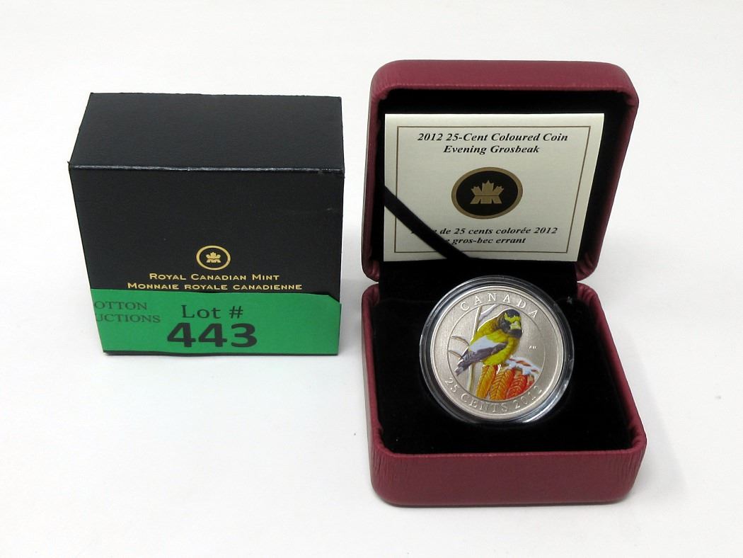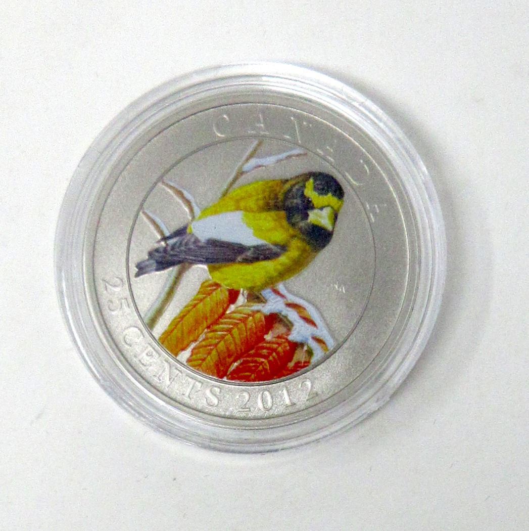 2012 "Evening Grosbeak" 25¢ Coloured Coin