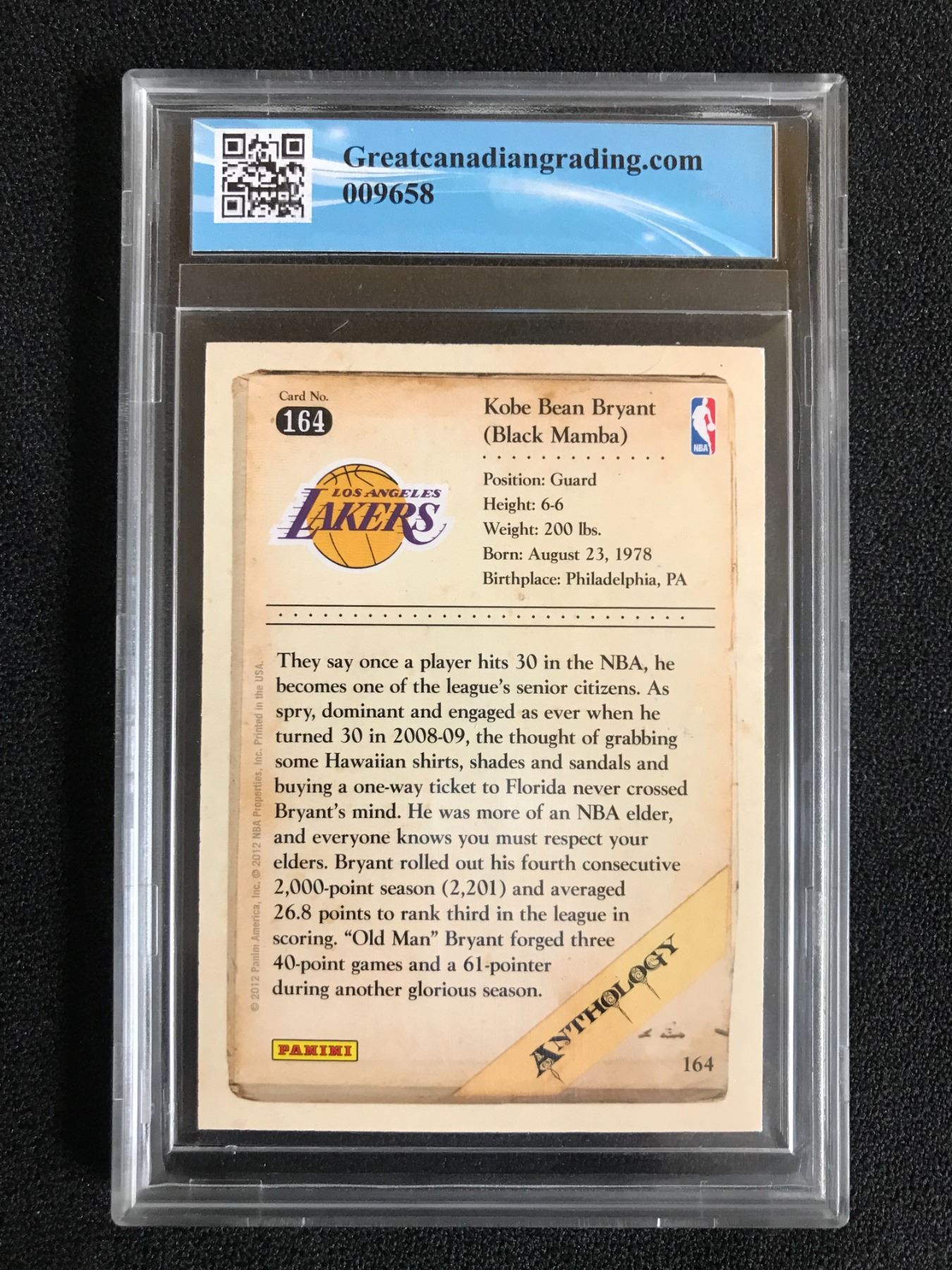 2012 PANINI NO.164 KOBE BRYANT ANTHOLOGY (GCG 9.5)
