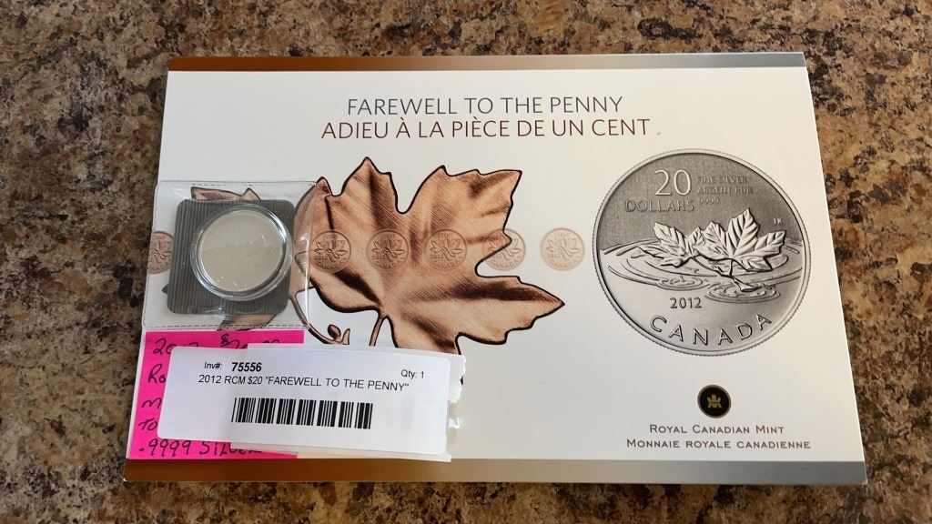 2012 RCM $20 "FAREWELL TO THE PENNY" .9999 SILVER COIN