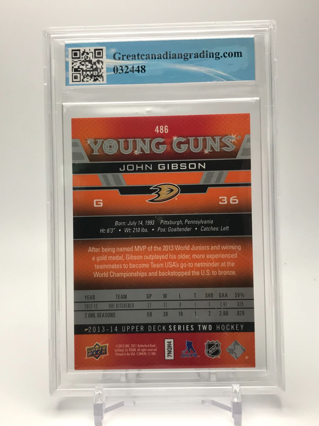 2013-14 UPPER DECK JOHN GIBSON YOUNG GUNS ROOKIE CARD (GCG 9.5)