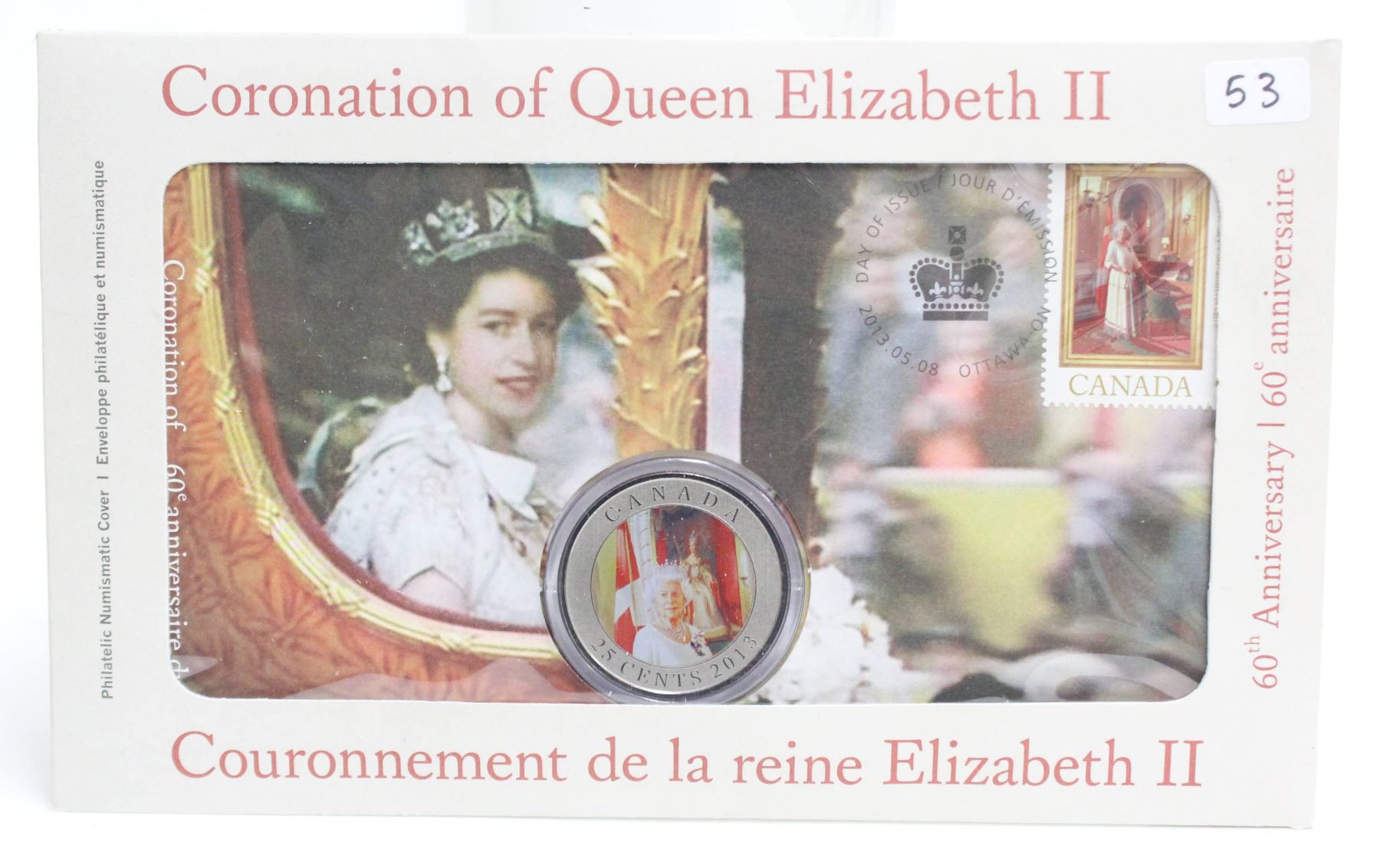 2013 25 Cent oversized Coin & First Day Cover Stamp Envelope Set Coronation of the Queen