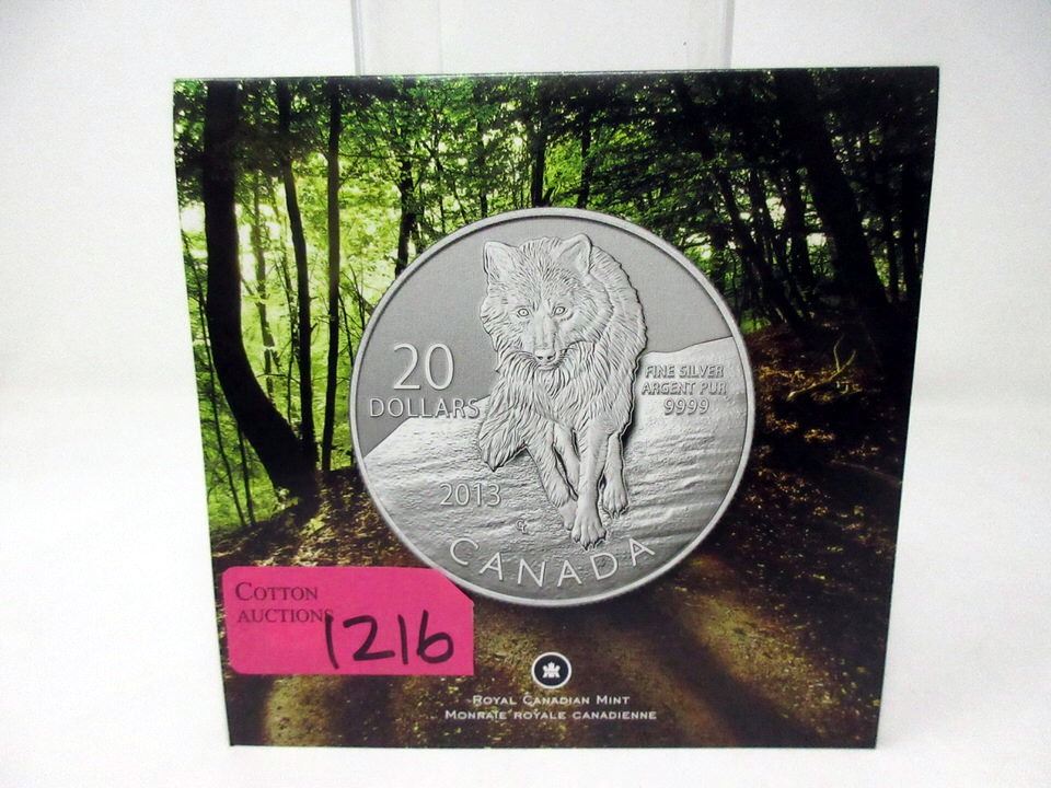 2013 Canadian .9999 Fine Silver  Wolf  $20 Coin