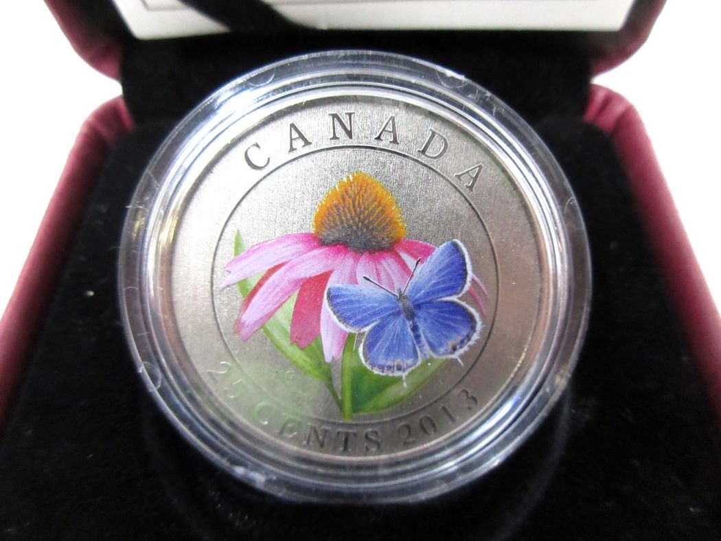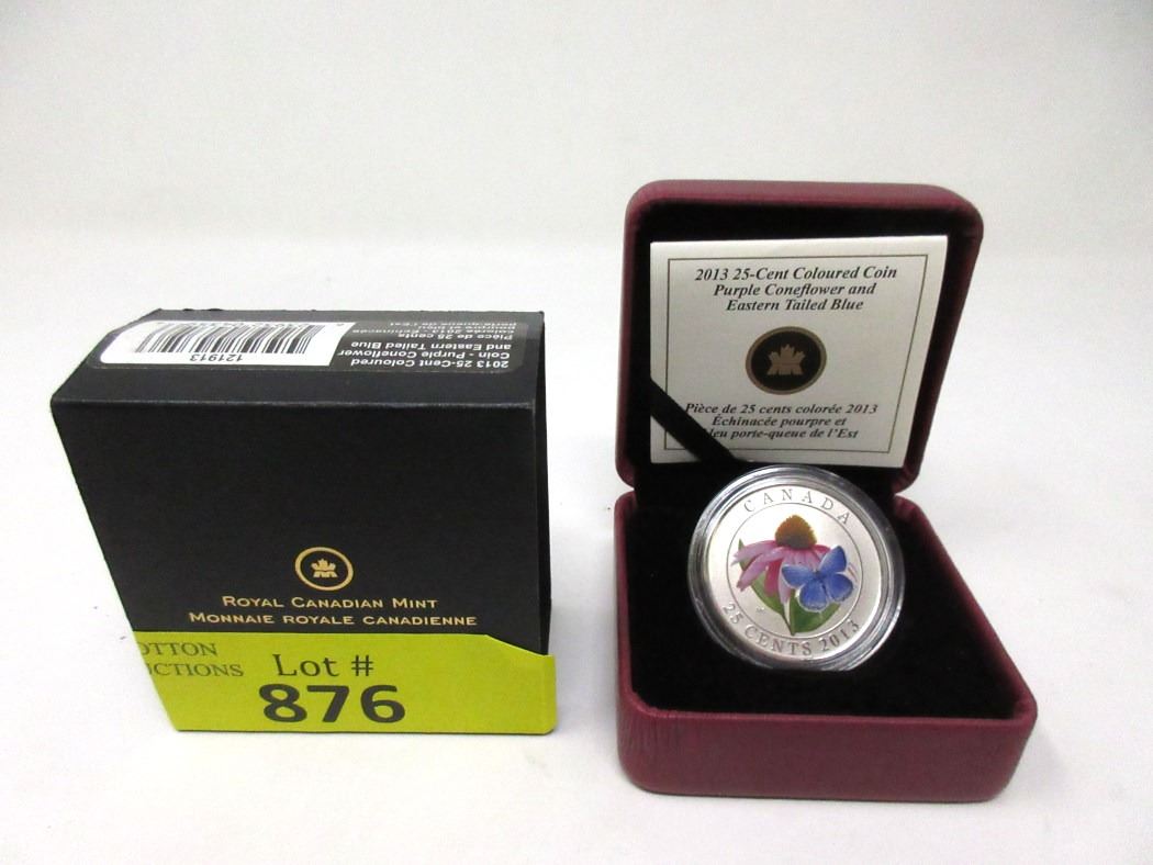 "Purple Cornflower and Eastern Tailed Blue". Coloured cupronickel coin. Only 17,500 minted. In original box with certificate.
