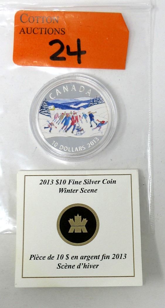"Winter Scene". 15.87 Grams. Mintage: 8,000. Encapsulated, includes mint certificate. Tax exempt.