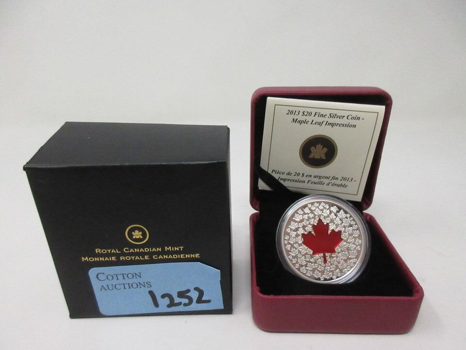 "Maple Leaf Impressions". 31.39 Grams. Mintage: 10,000. In original box with mint certificate. Tax exempt.