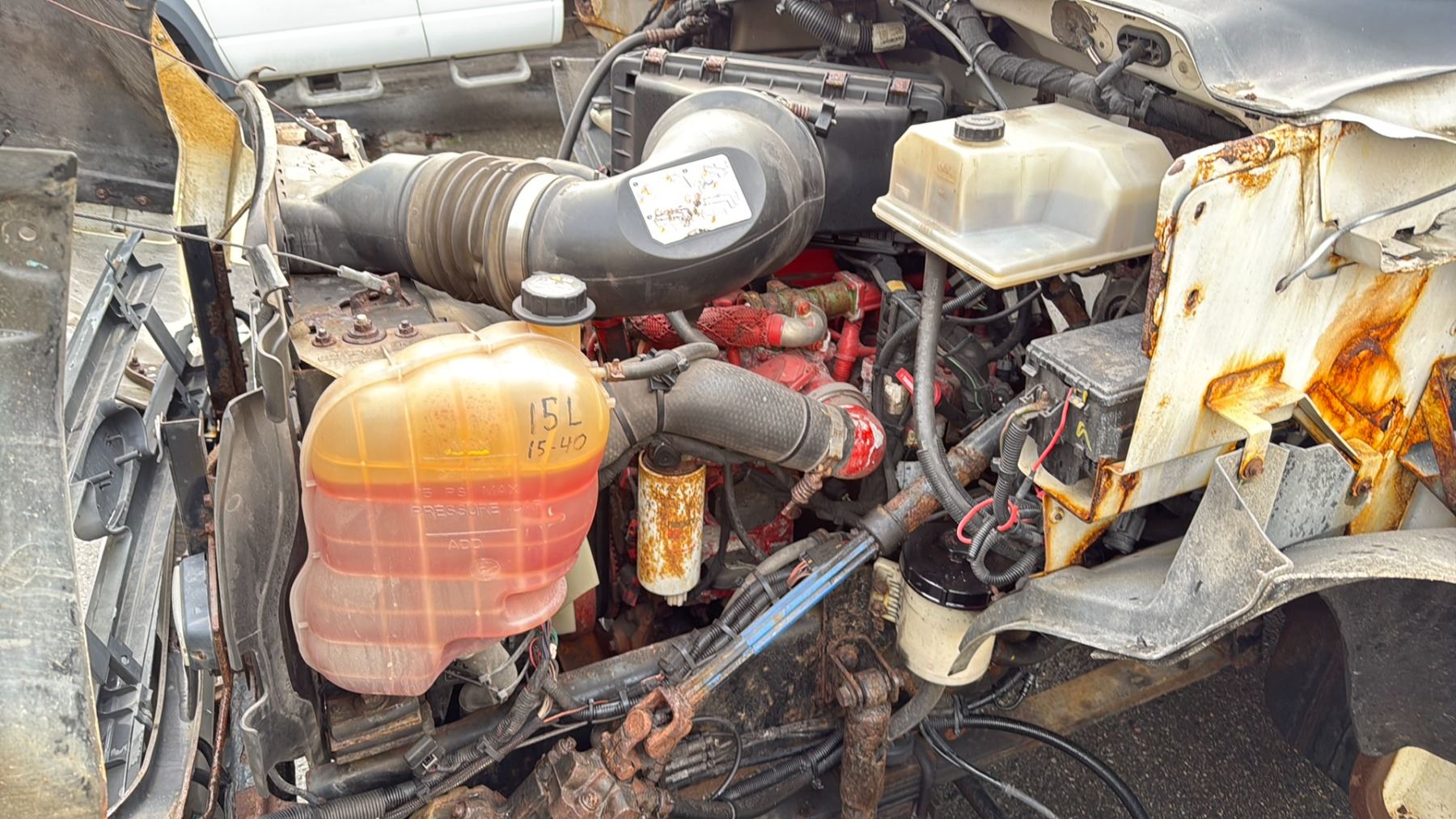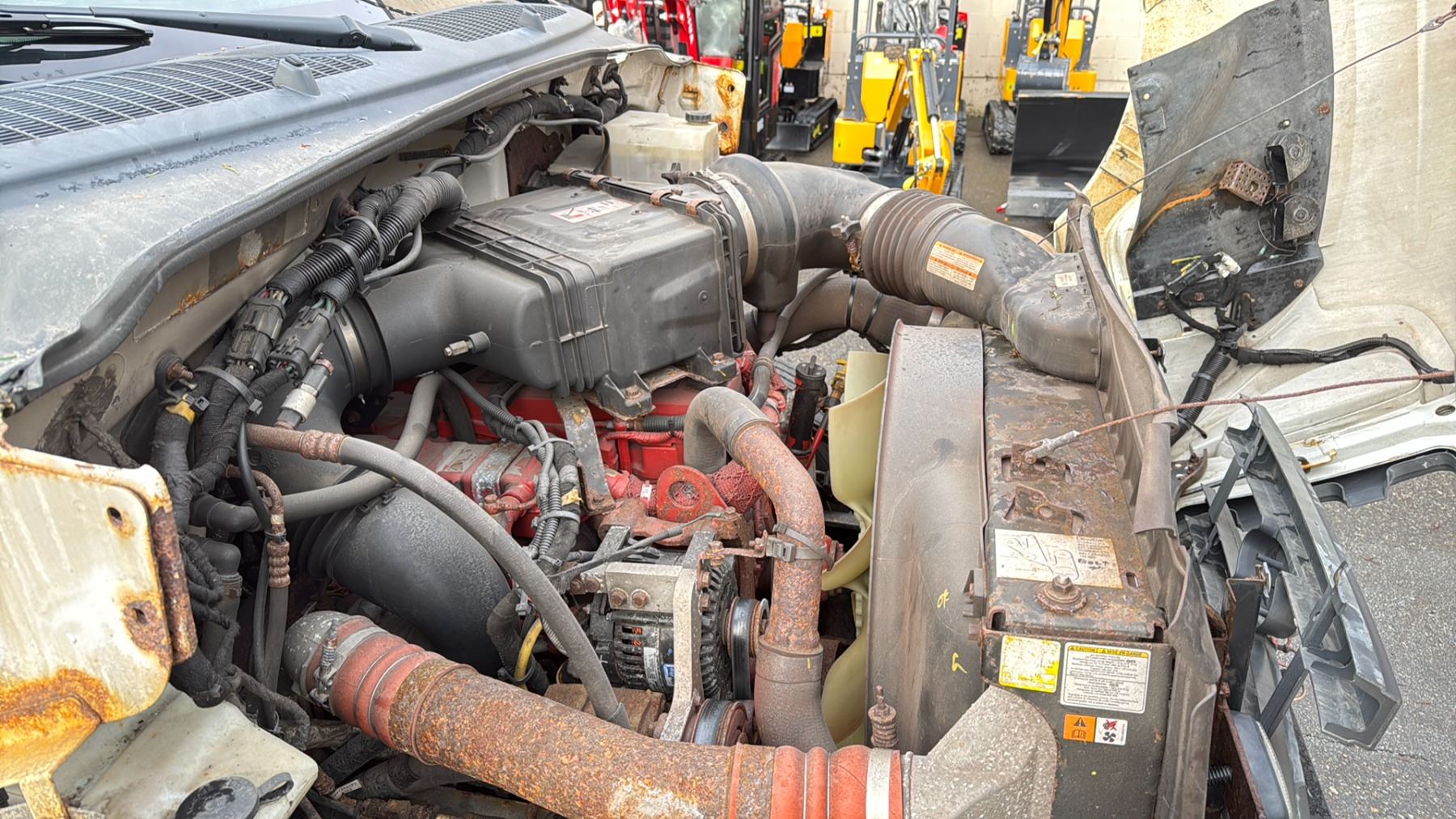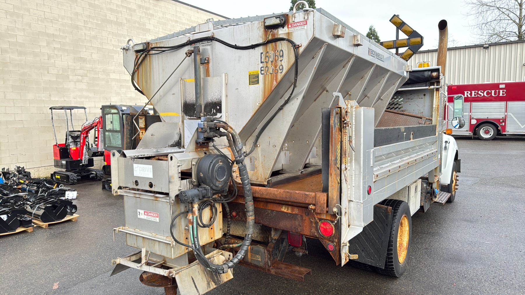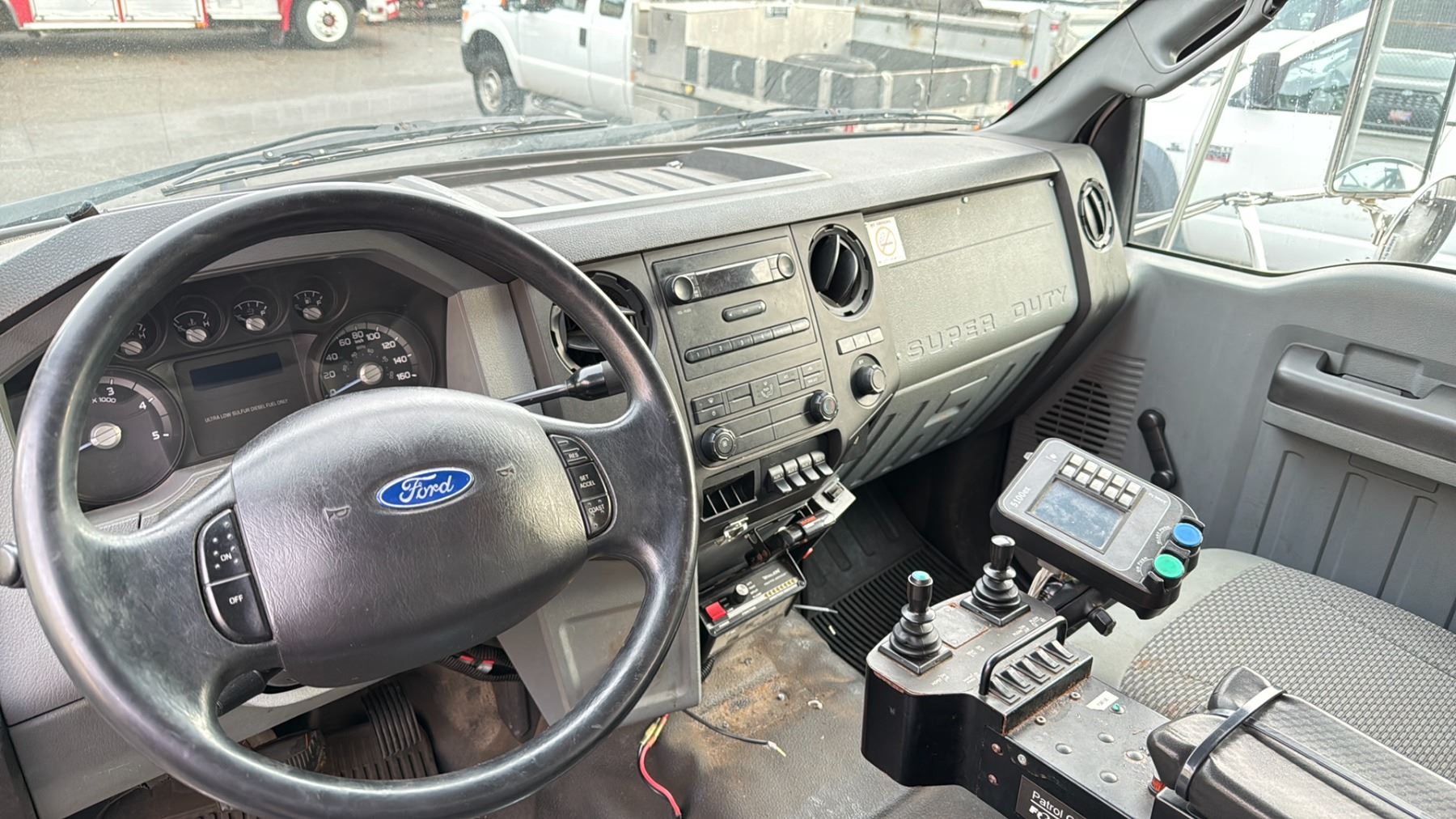 2013 FORD F650 XL SUPERDUTY DUMP TRUCK WHITE VIN 3FRNF6FC7DV019539 64,617 KMS, DIESEL (D), AUTOMATIC, HAS REGISTRATION, HAS KEYS FEATURES: RADIO, CRUISE CONTROL, AIR COND HISTORY: X-CITY WESTERN CONTRACTOR GRADE PLOW ATTACHMENT WITH LIGHTS, 10' X 2.5' PLOW BLADE, ABS LIGHT ON, TC LIGHT ON, PARKING BRAKE DOES NOT WORK, BONNELL SALT SPREADER, SOME RUST, BROKEN GRILL 1 ICBC DECLARATION NO DETAILS