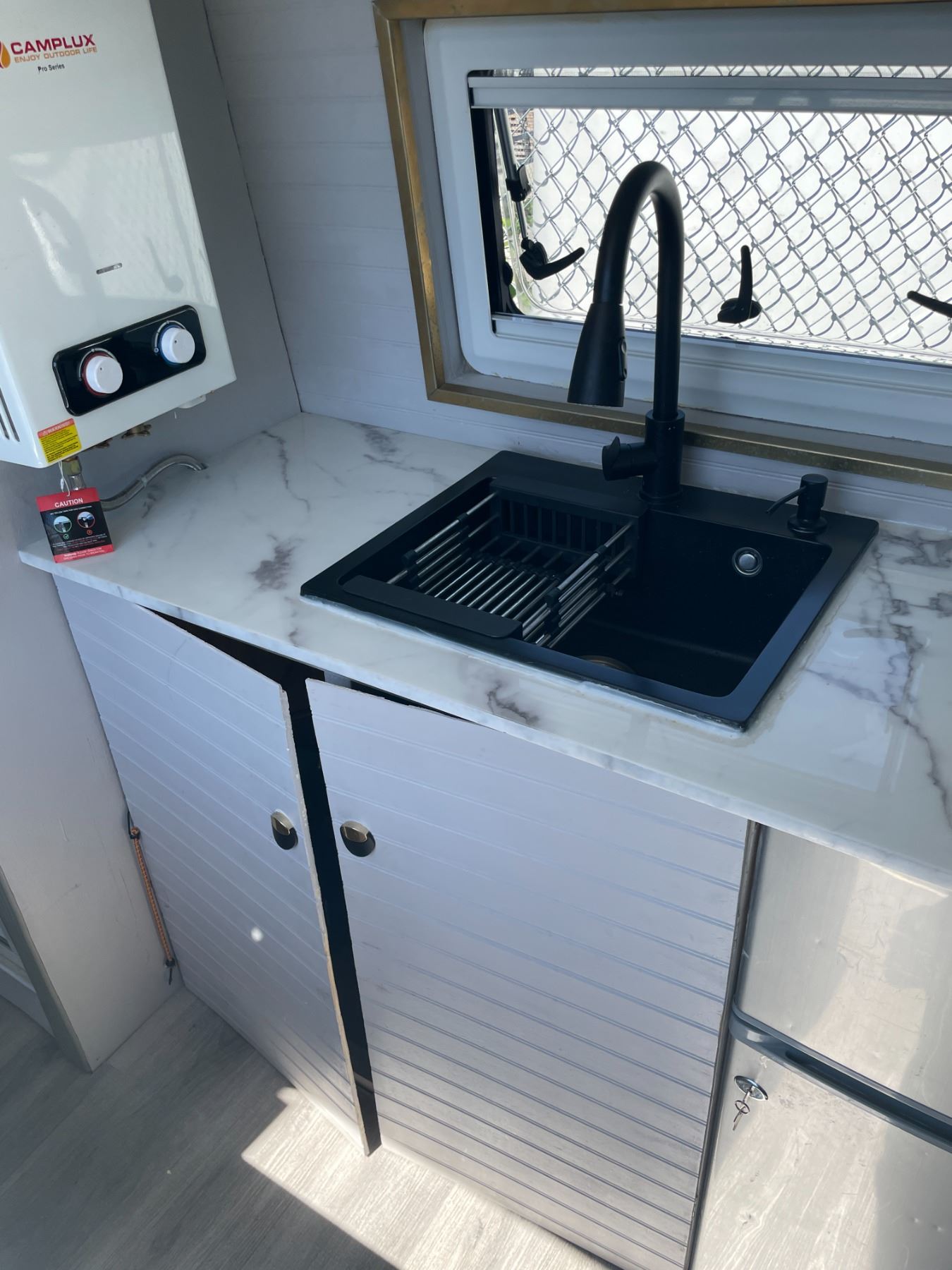 Fully off-grid ready camper van with: 560Ah LiFePO4 battery & 560W solar, 2400W inverter + Renogy 40A charger, 120L clean / 100L grey water tanks, Camplux hot water heater & indoor shower, 2-burner stove, sink, portable toilet, Converts from 2 singles to queen bed, 4 windows w/ screens + blinds, 80% tires, BC registered, runs great