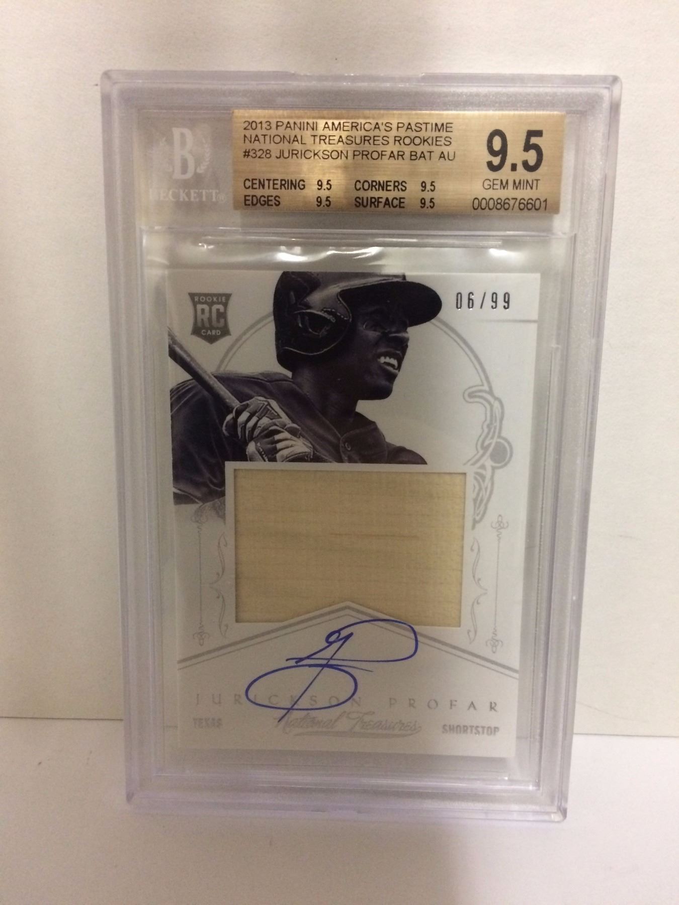 2013 PANINI AMERICA'S PASTIME NATIONAL TREASURES ROOKIES #328 JURICKSON PROFAR BAT AU TRADING CARD