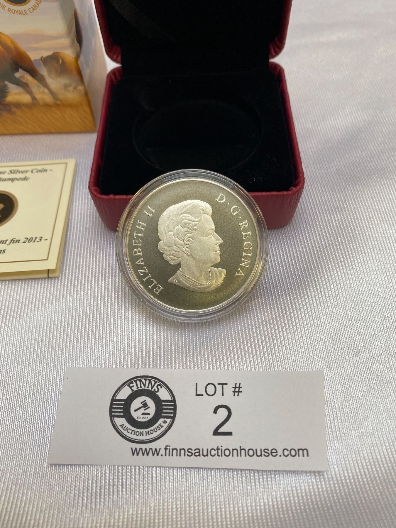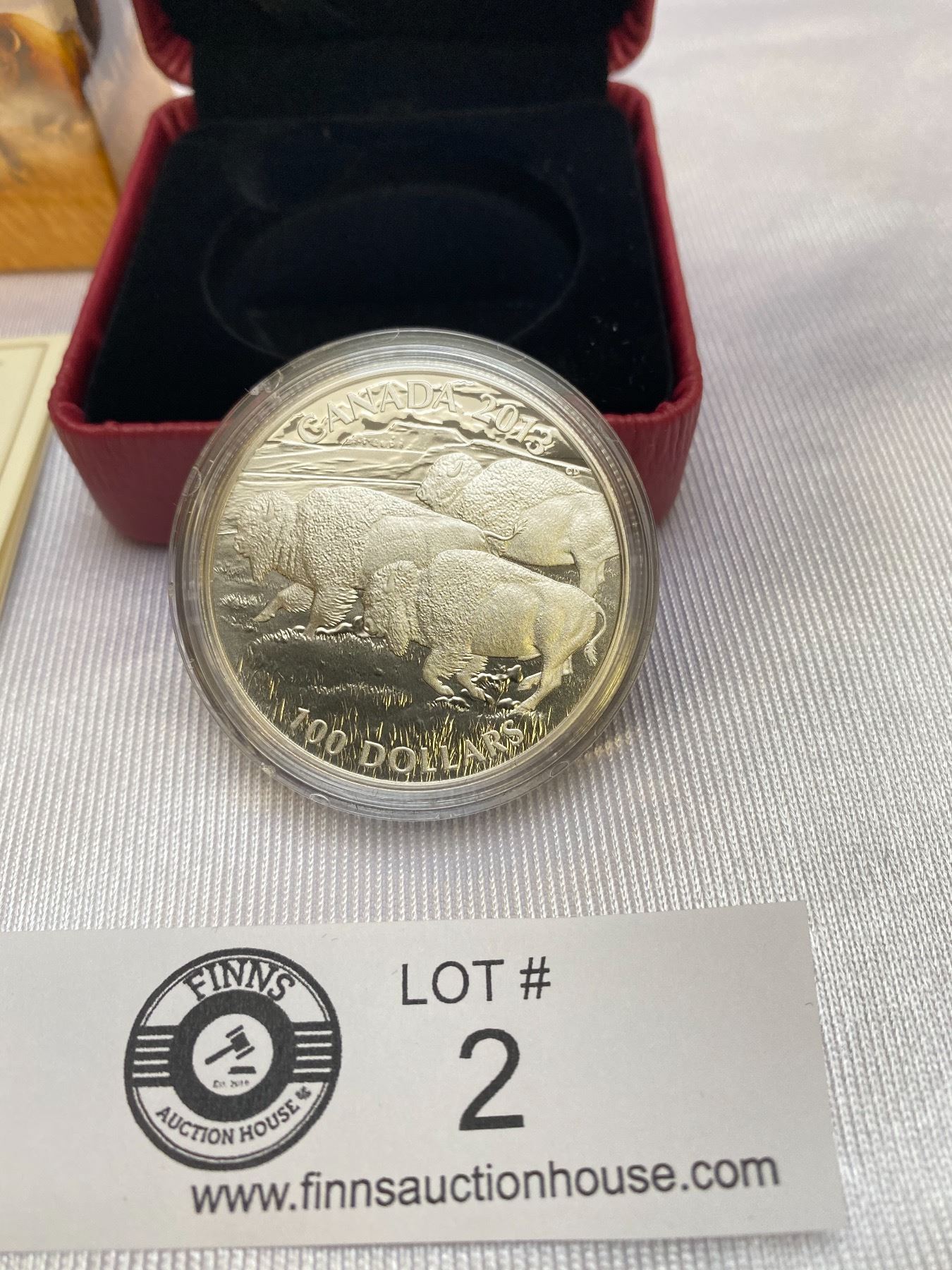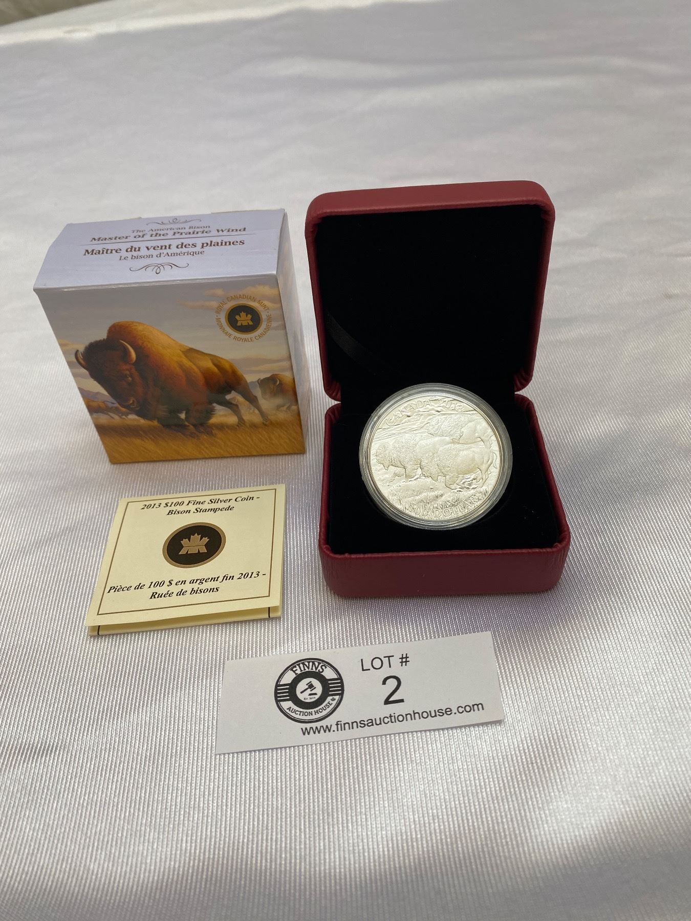2013 Royal Canadian Mint $100 Fine Silver Coin Bison Stampede in Original Box
