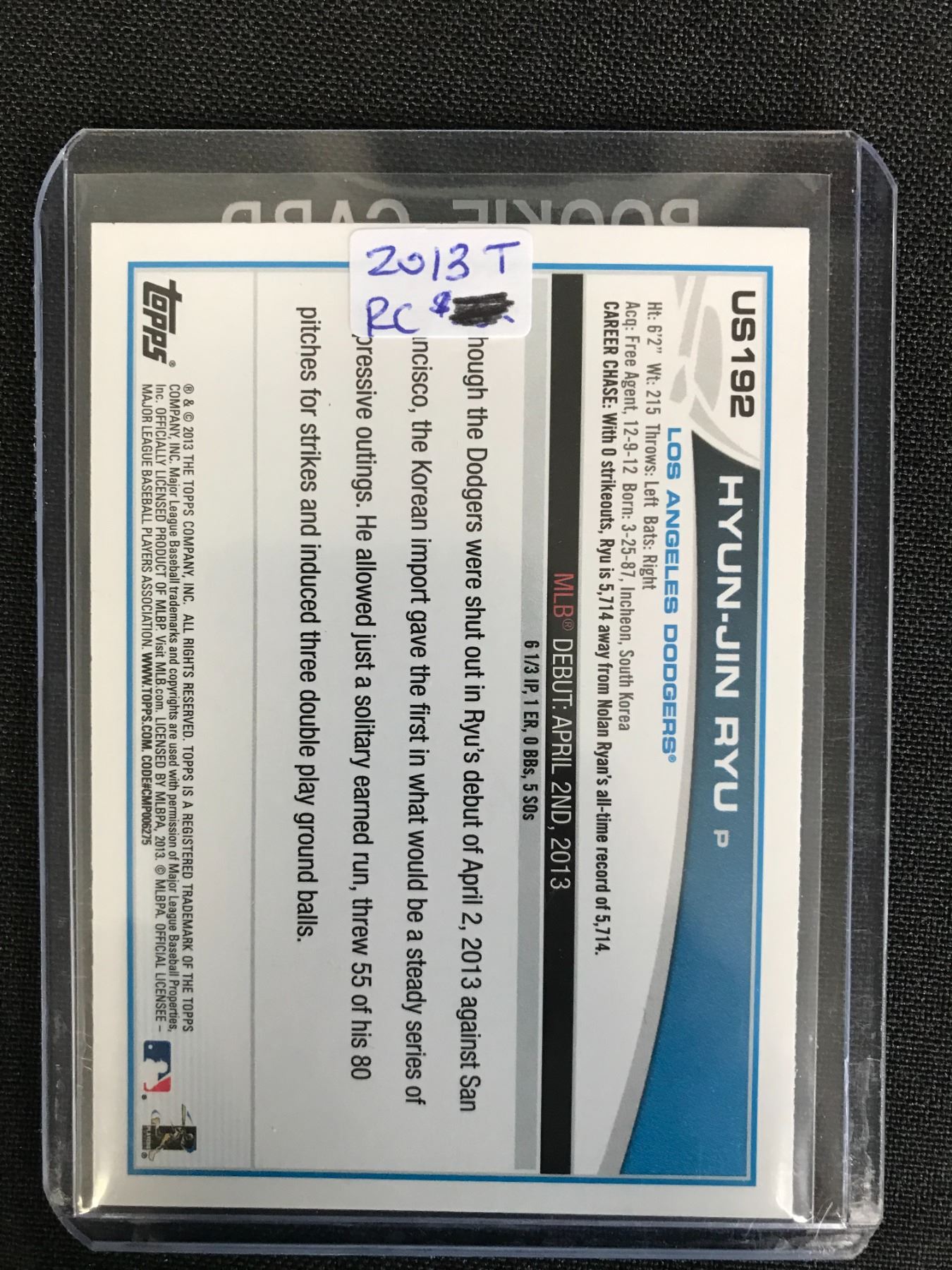 2013 TOPPS #US192 HYUN-JIN RYU Rookie Card