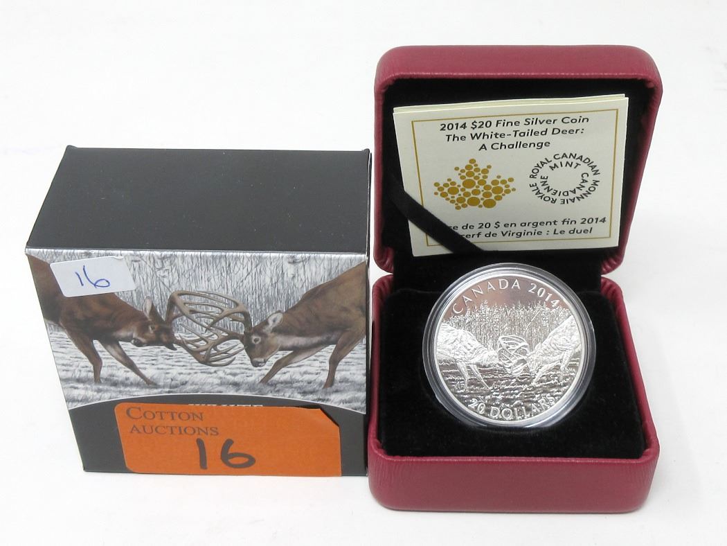 "White Tailed-Deer: A Challenge". 31.39 Grams. Mintage: 7,500. In original box with mint certificate. Tax exempt.