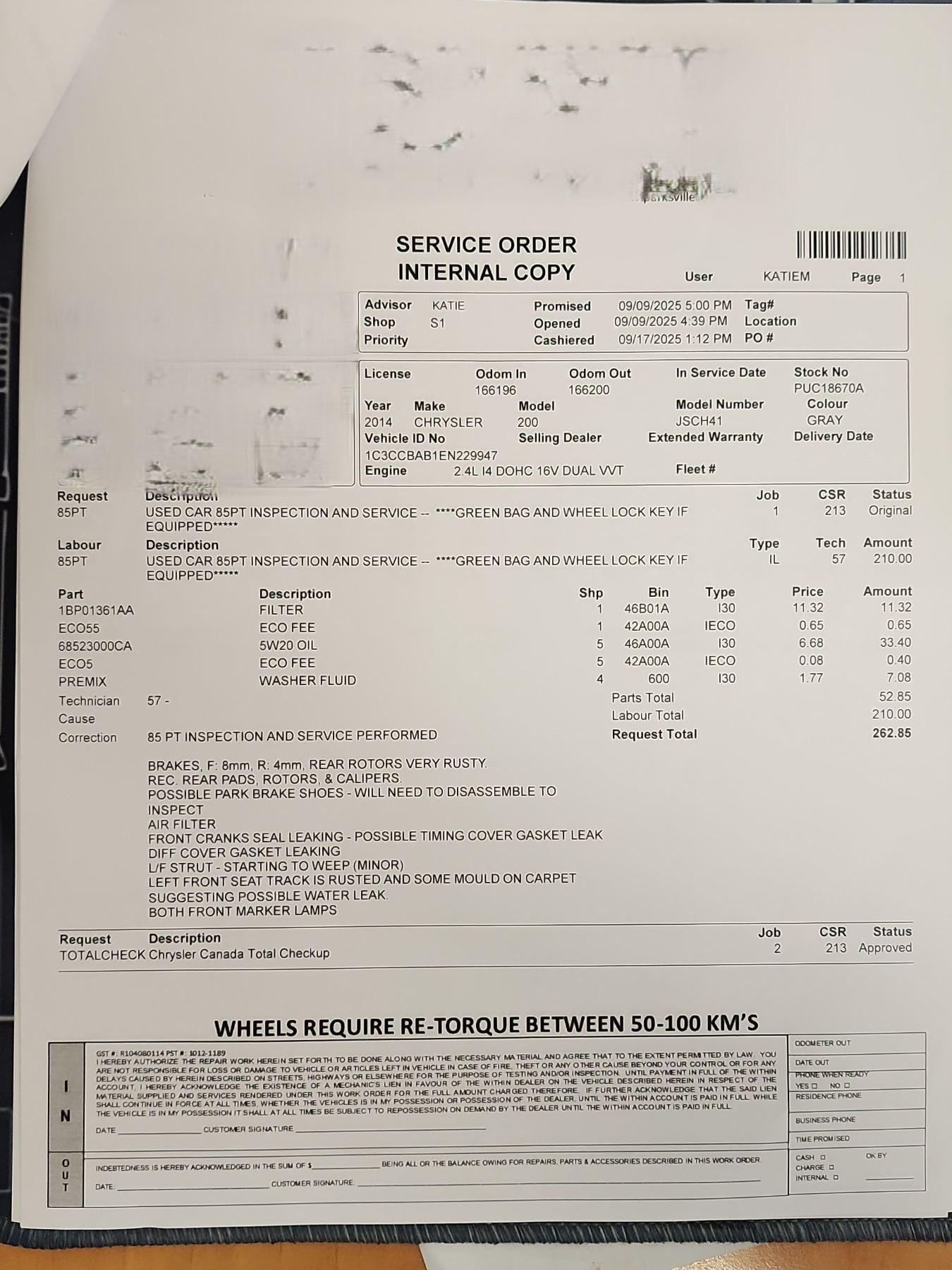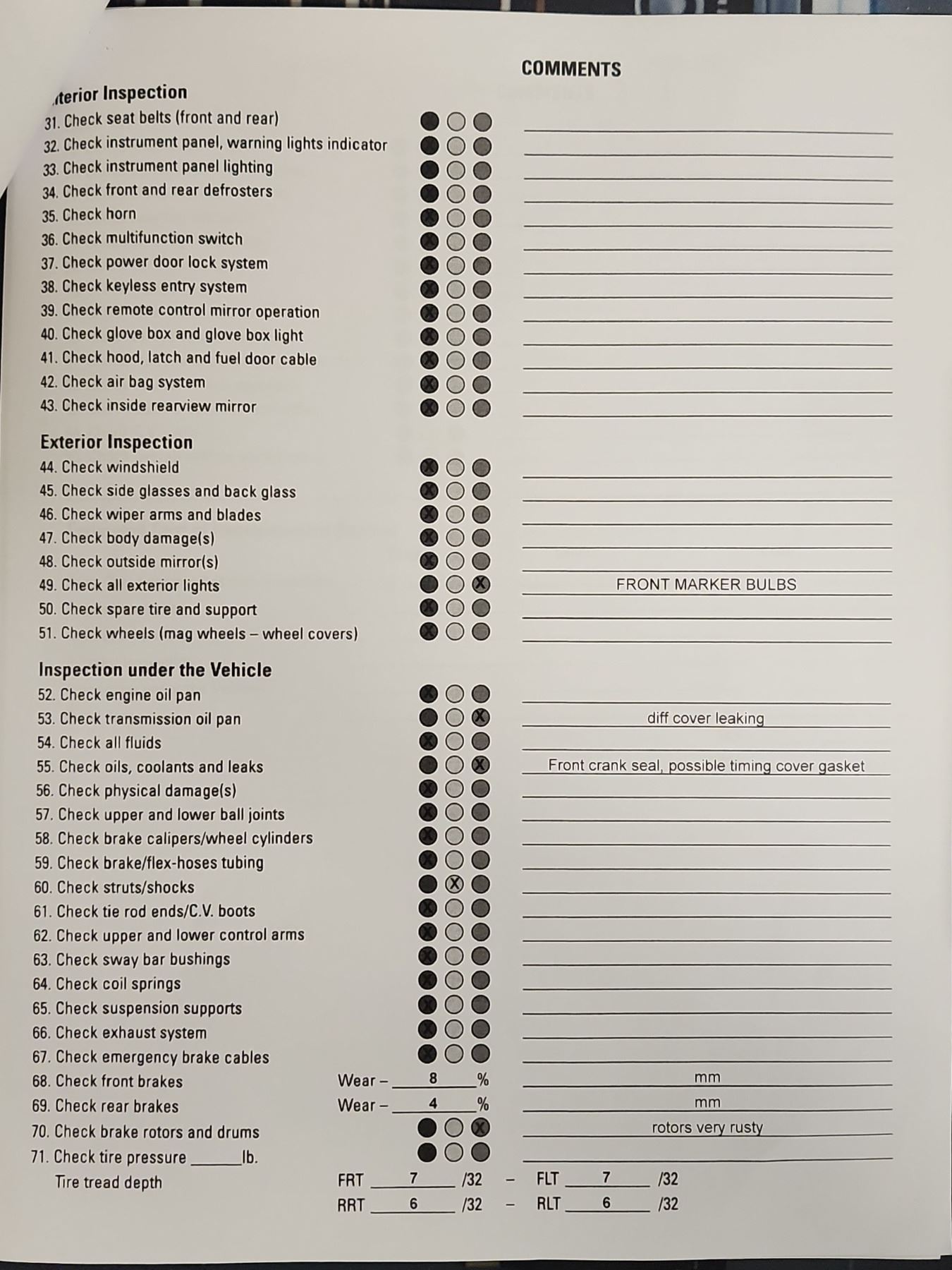 j) Any engines smoking or blow by, noisy lifters, head gaskets and camshaft exceeding 96,000 kms.