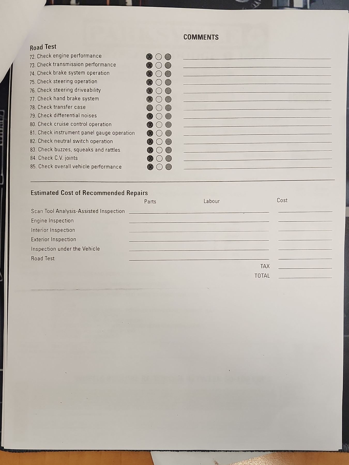 f) Springs, shocks, tires, brakes, suspensions, clutch assemblies and cooling systems, heater core, power steering, tune- ups, exhaust & oil or coolant leaks
