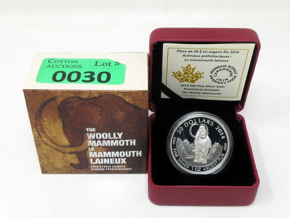"Prehistoric Animals: The Woolly Mammoth". In RCM box with RCM certificate. Mintage 7,500. Tax exempt