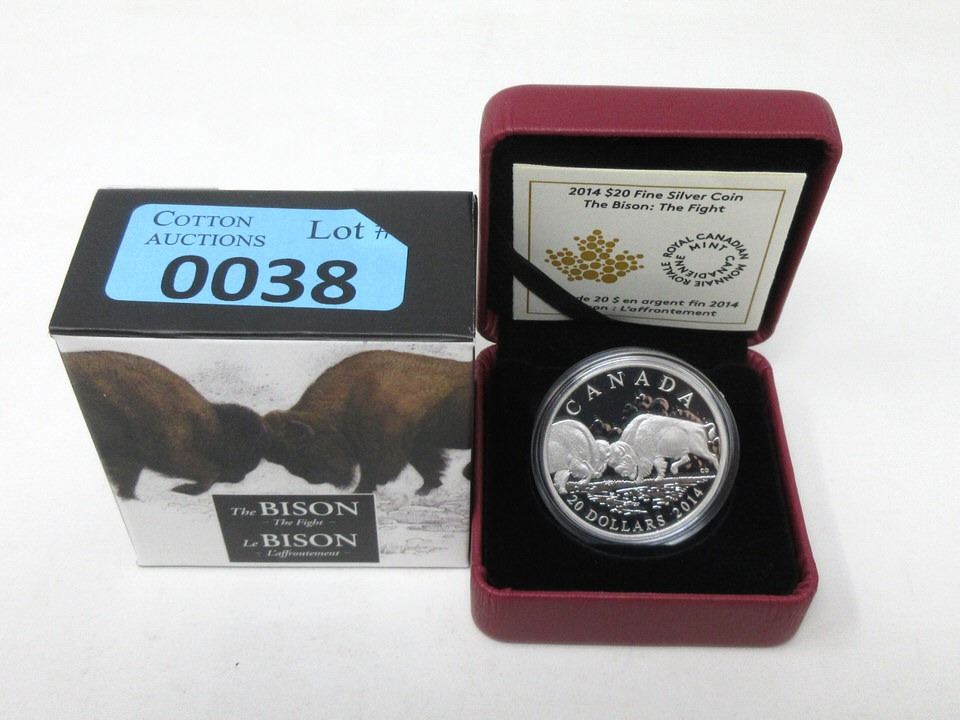 "The Bison: The Fight". 31.39 Grams. Mintage 7,500. In RCM box with RCM certificate. Tax exempt