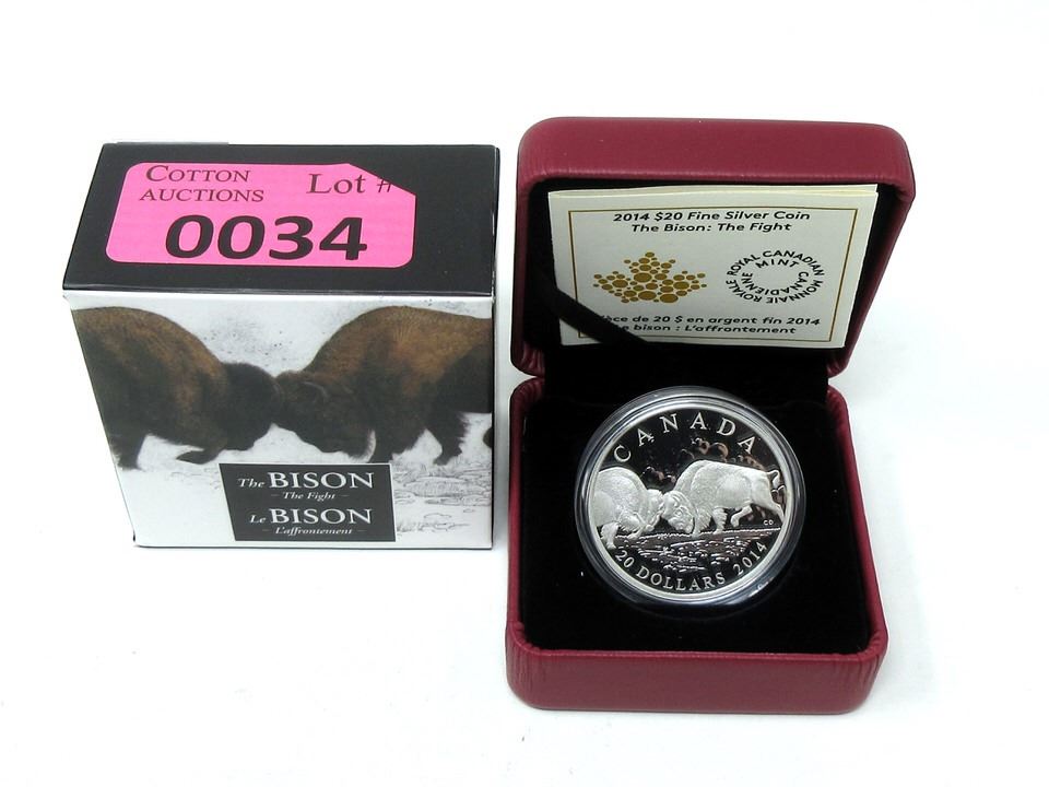 "The Bison: The Fight". 31.39 Grams. Mintage 7,500. In RCM box with RCM certificate. Tax exempt