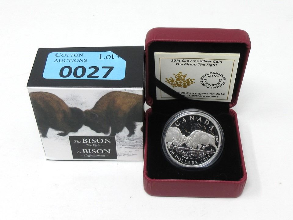 "The Bison: The Fight". 31.39 Grams. Mintage 7,500. In RCM box with RCM certificate. Tax exempt