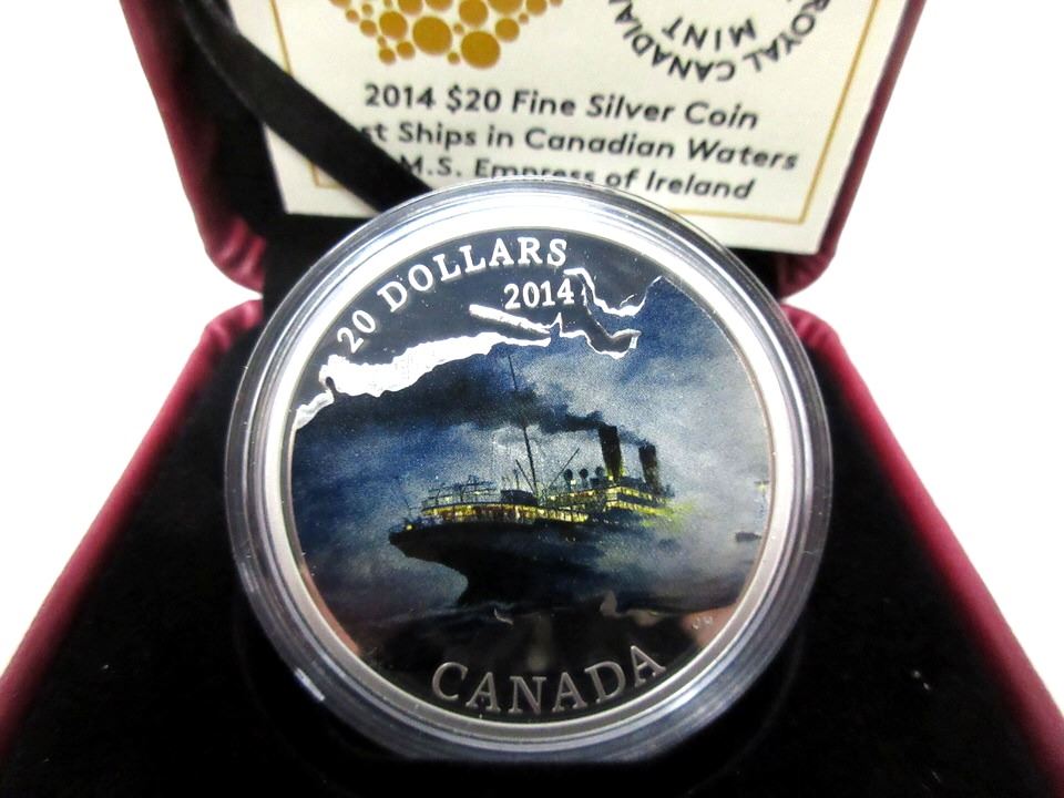 "Lost Ships in Canadian Waters " R.M.S. Empress of Ireland" 31.39 grams. Ltd. Edition of 7,000. In original mint box with mint certificate. Tax exempt.