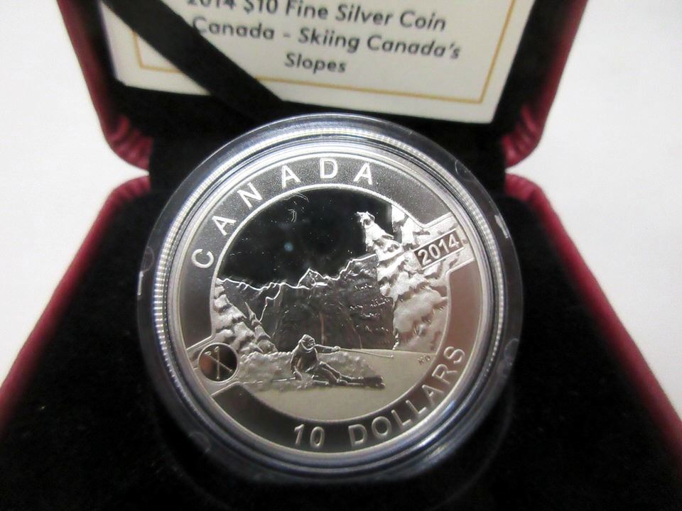 "Skiing Canada's Slopes". 15.87 grams. Ltd. Edition of 40,000. In original mint box with certificate. Tax exempt.