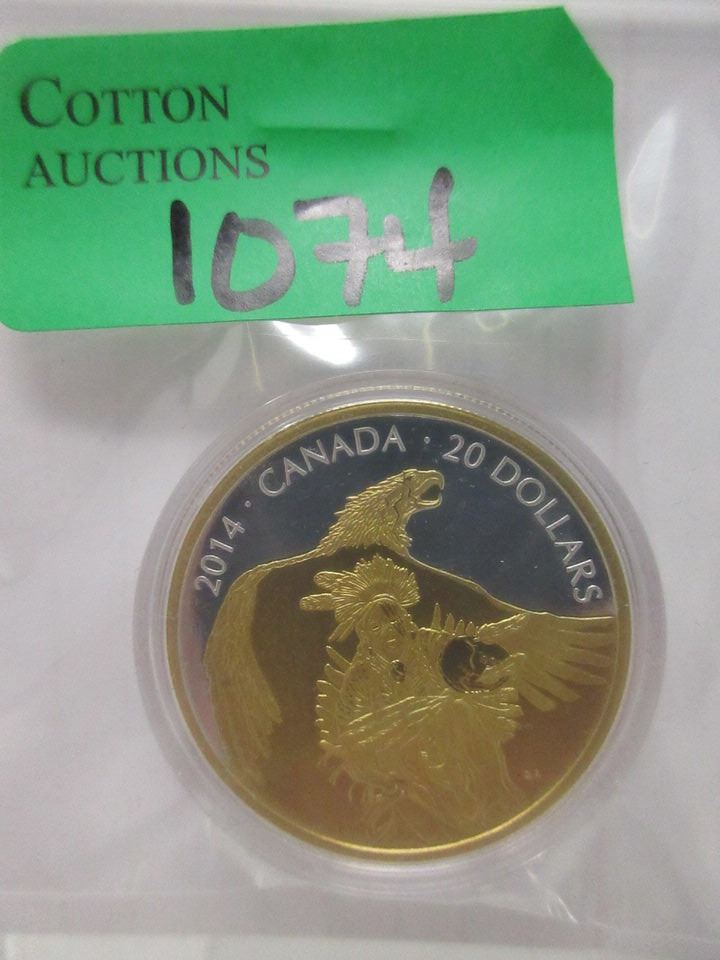 "Nanaboozhoo & Thunderbird". Selective Gold Plating. 31.39 grams. Mintage: 8,500. Encapsulated. Tax exempt.