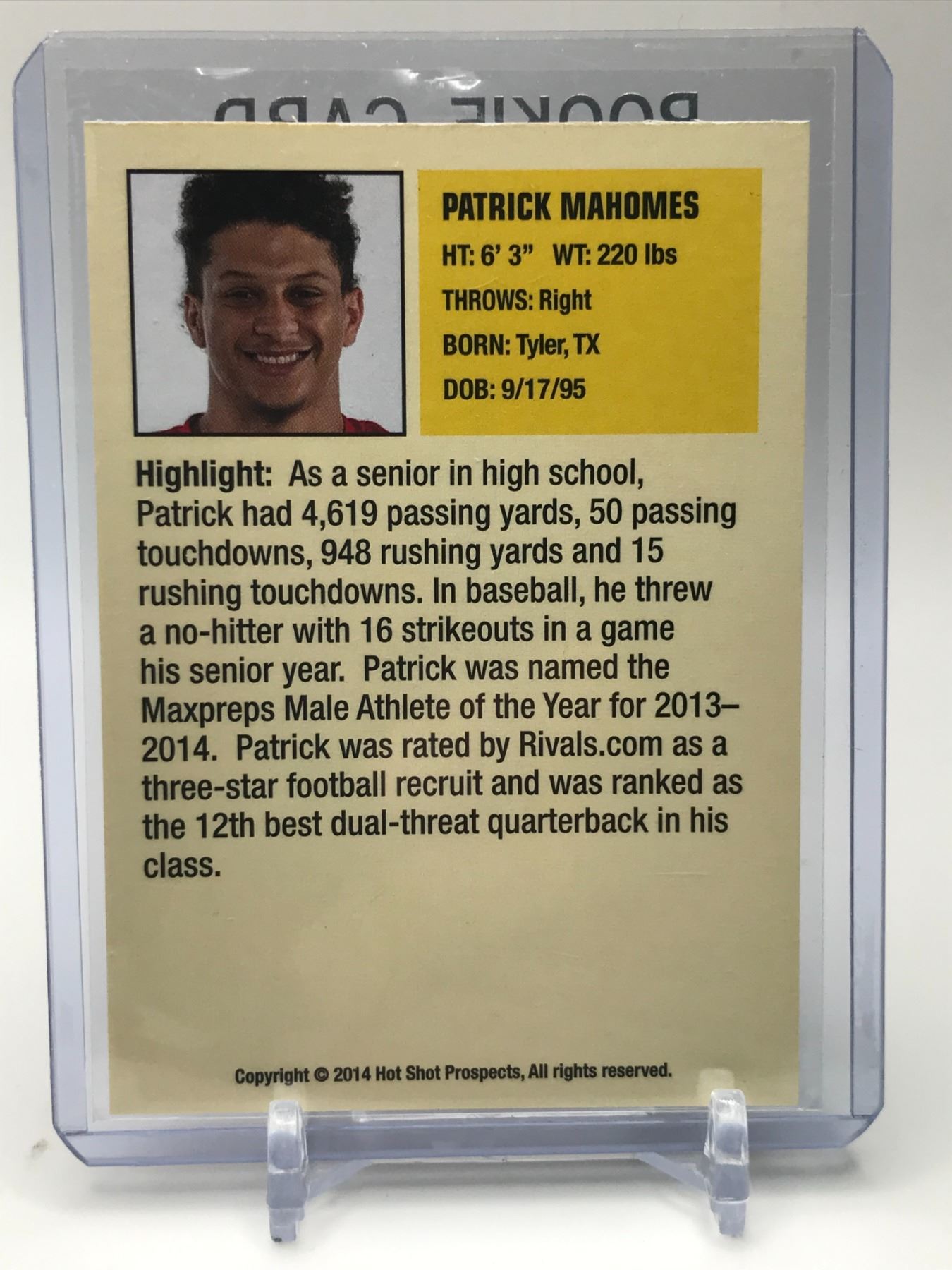 2014 HOT SHOT RPOSPECTS PATRICK MAHOMES 2014 ELECTRIC FRSHMAN ROOKIE CARD