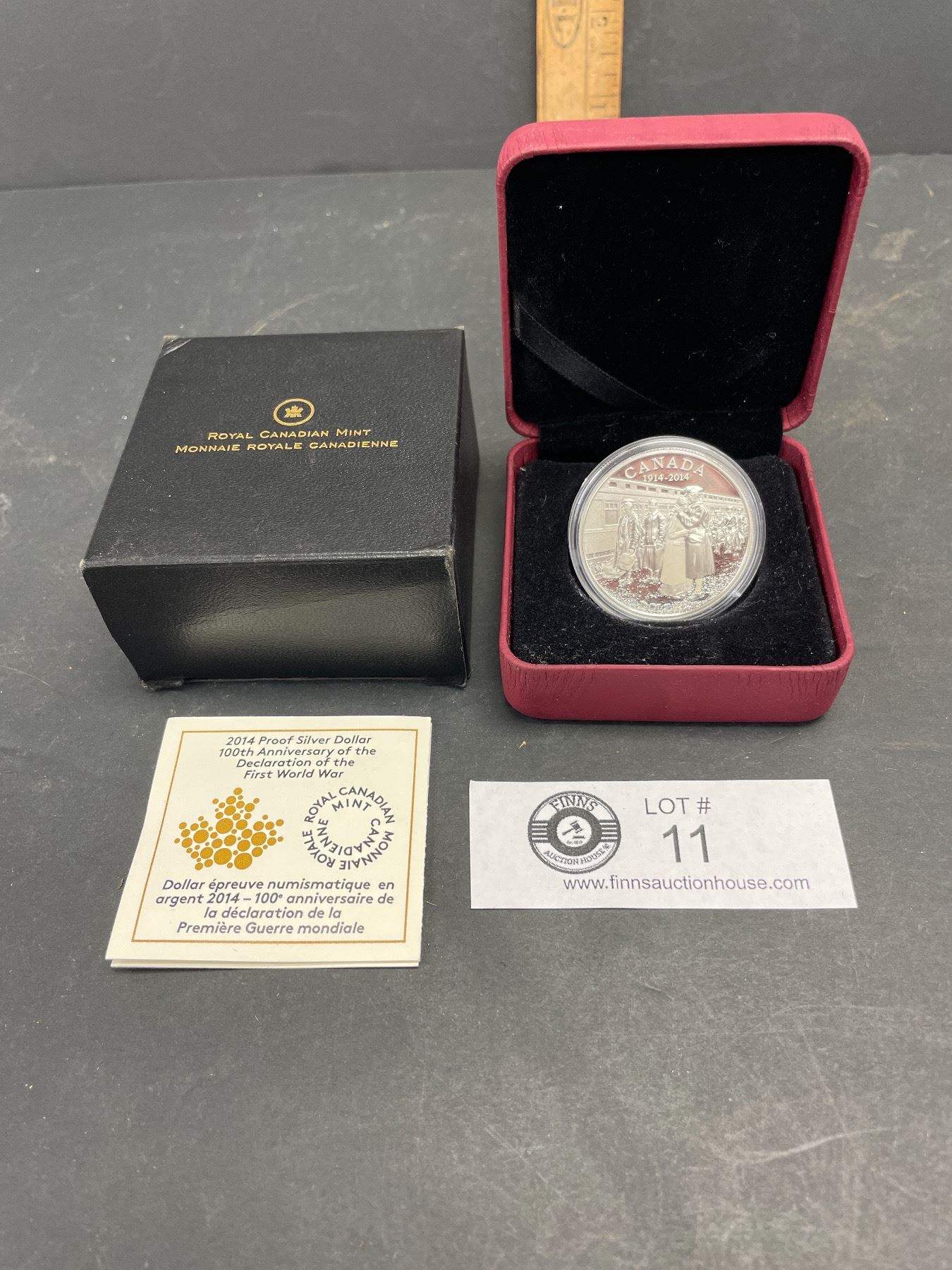 2014 Proof Silver Dollar 100th Anniversary of the Declaration on the First World War in Original Box