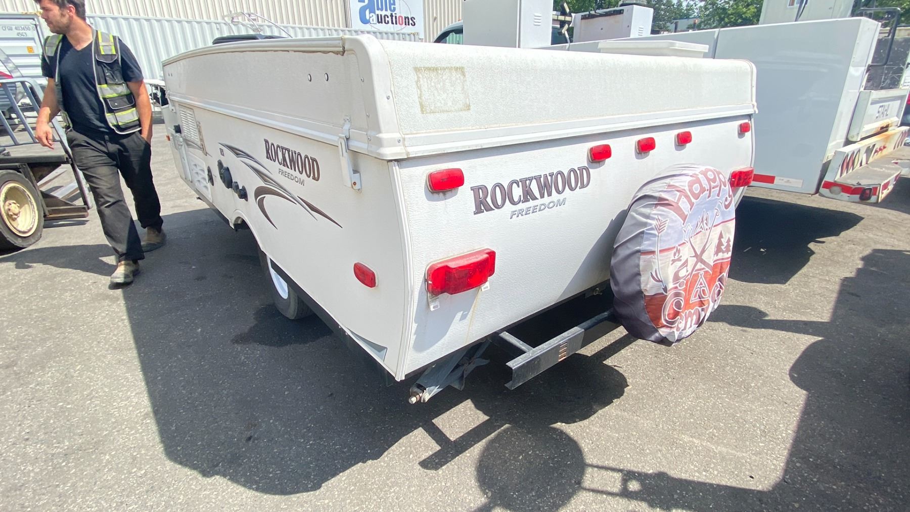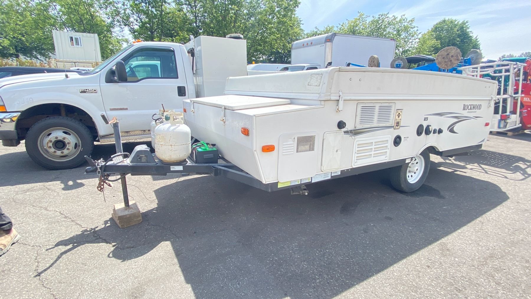 2014 ROCKWOOD TENT TRAILER WHITE VIN 4X4CFM417ED291614 HAS REGISTRATION, HAS KEYS WITH 2 PROPANE TANKS, BATTERY DEEP CELL INCLUDED UNKNOWN CONDITION