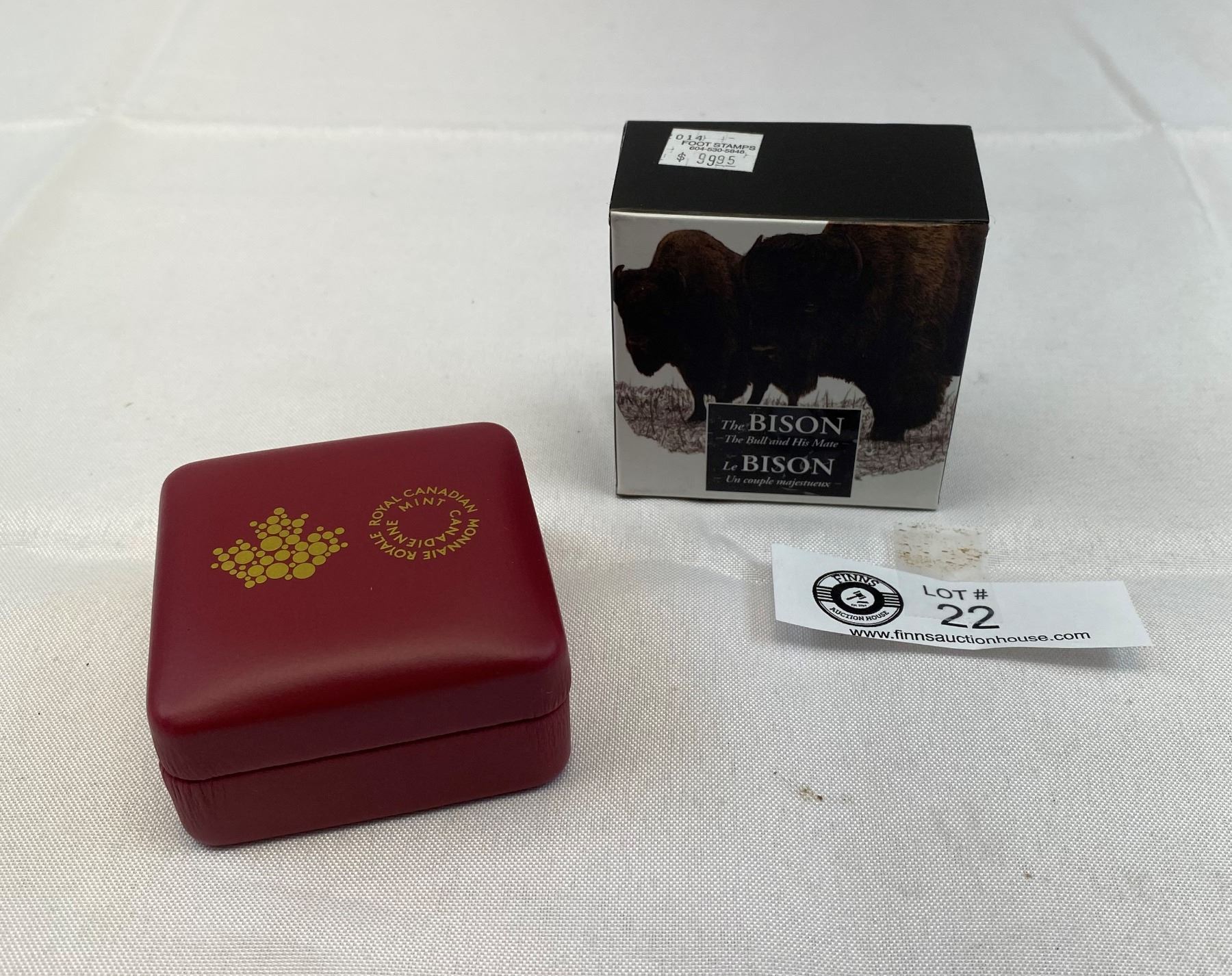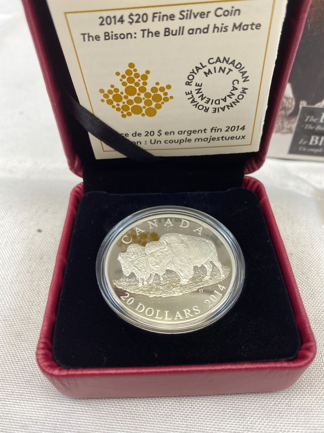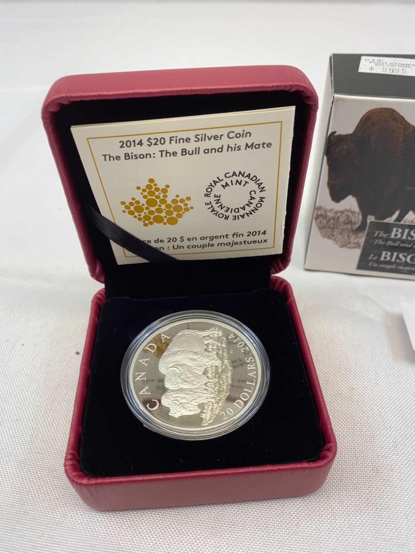 2014 Royal Canadian Mint $20 Fine Silver Coin, The Bison The Bull And His Mate In Original Box With COA