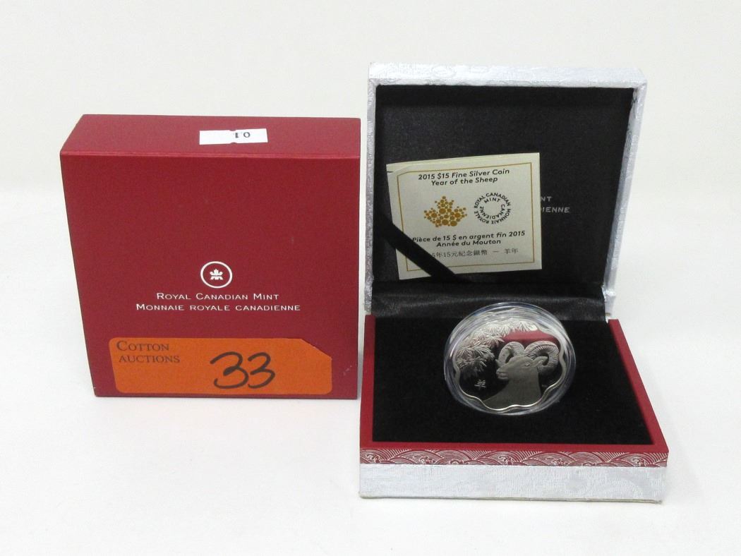 "Year of the Sheep". 26.7 grams. Ltd. Mintage of 18,888. In original box with mint certificate. Tax exempt.