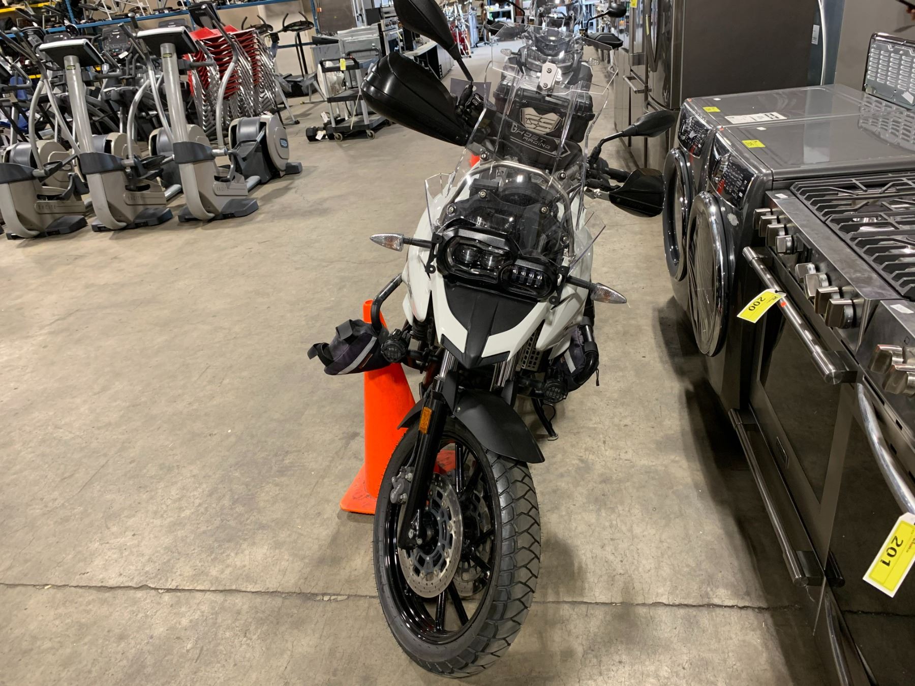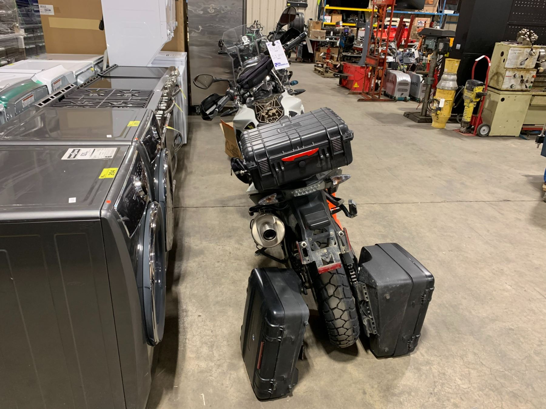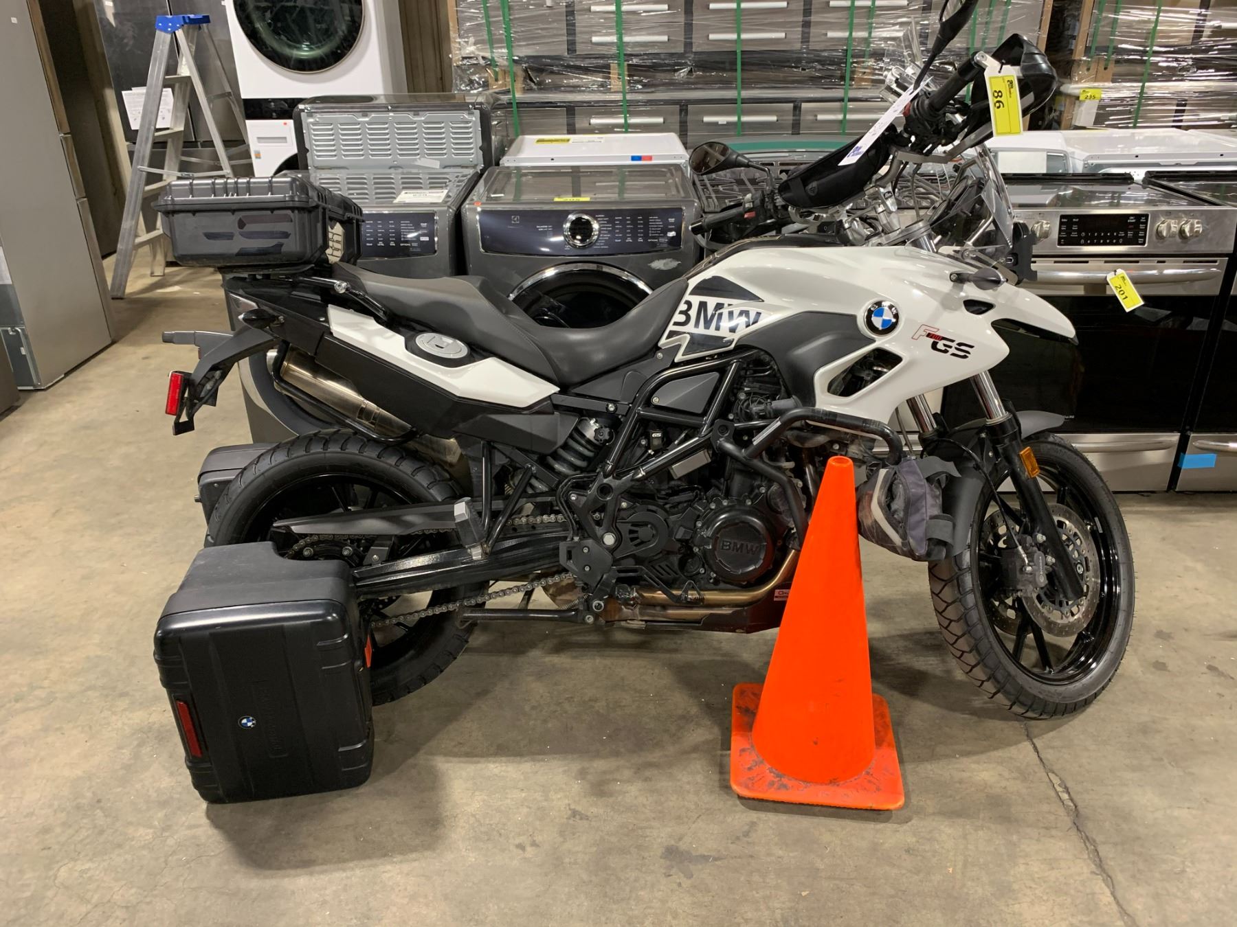 2015 BMW F700 GS MOTORCYCLE, WHITE, VIN WB10B0100FZZ92084 53,801 KMS, GAS, MANUAL, KEYS, STARTS, NEW BATTERY, WARNING LIGHT IS ON, HEATED HANDLE GRIPS, LIQUID COOLED, 4 STROKE ENGINE, *HAS REGISTRATION* NO ICBC DECLARATIONS