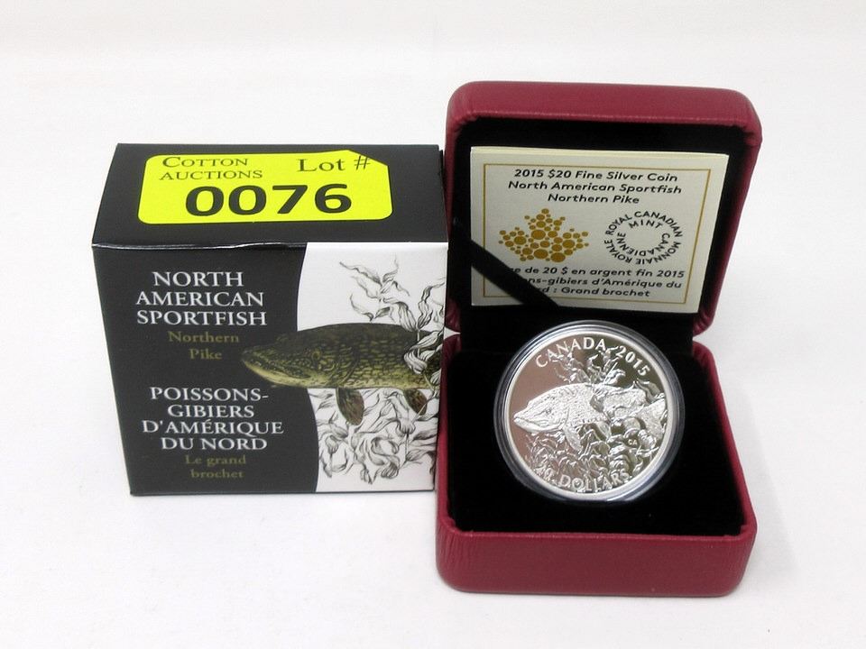 "North American Sportfish Northern Pike". 31.39 Grams. In RCM box with RCM certificate. Mintage 6,500. Tax exempt