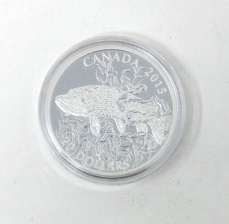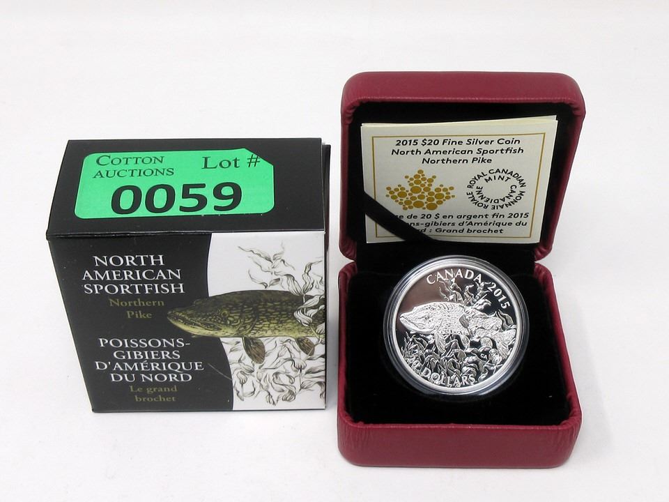 "North American Sportfish Northern Pike". 31.39 Grams. In RCM box with RCM certificate. Mintage 6,500. Tax exempt