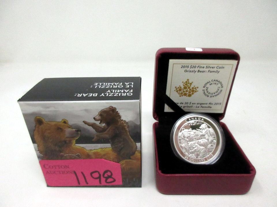 Grizzly Bear: Family. 31.39 Grams. Mintage: 6.500. In original box with mint certificate. Tax exempt.