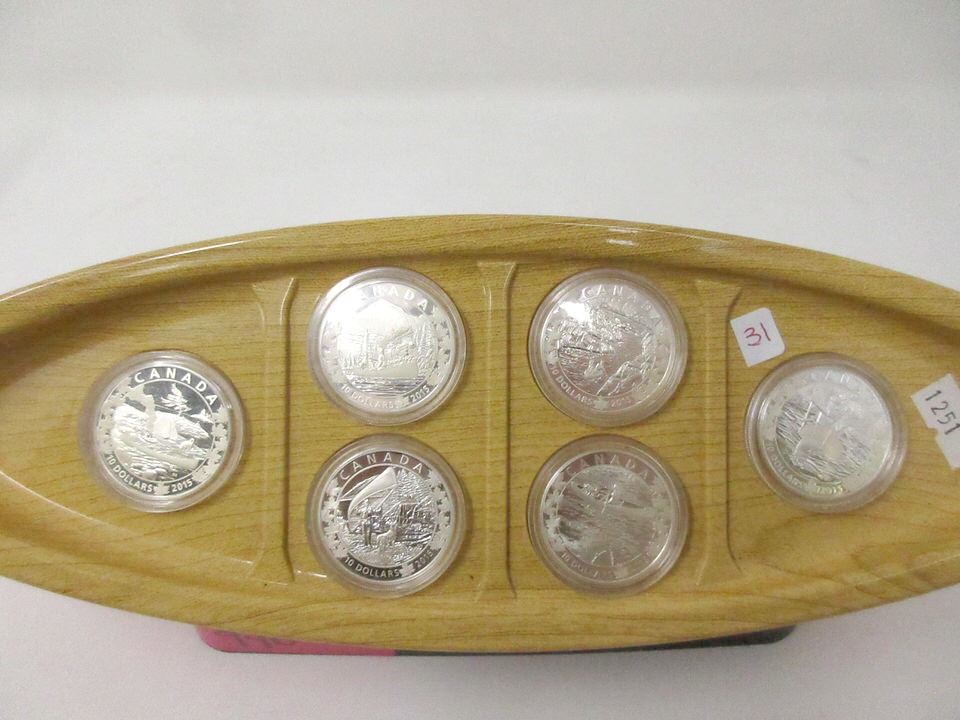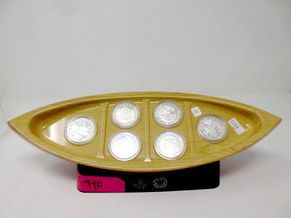 Each $10 coin weighs 15.87 grams for at total weight of 95.2 grams. Mintage of 20,000. In Canoe display. Missing one of the certificates. Tax exempt.