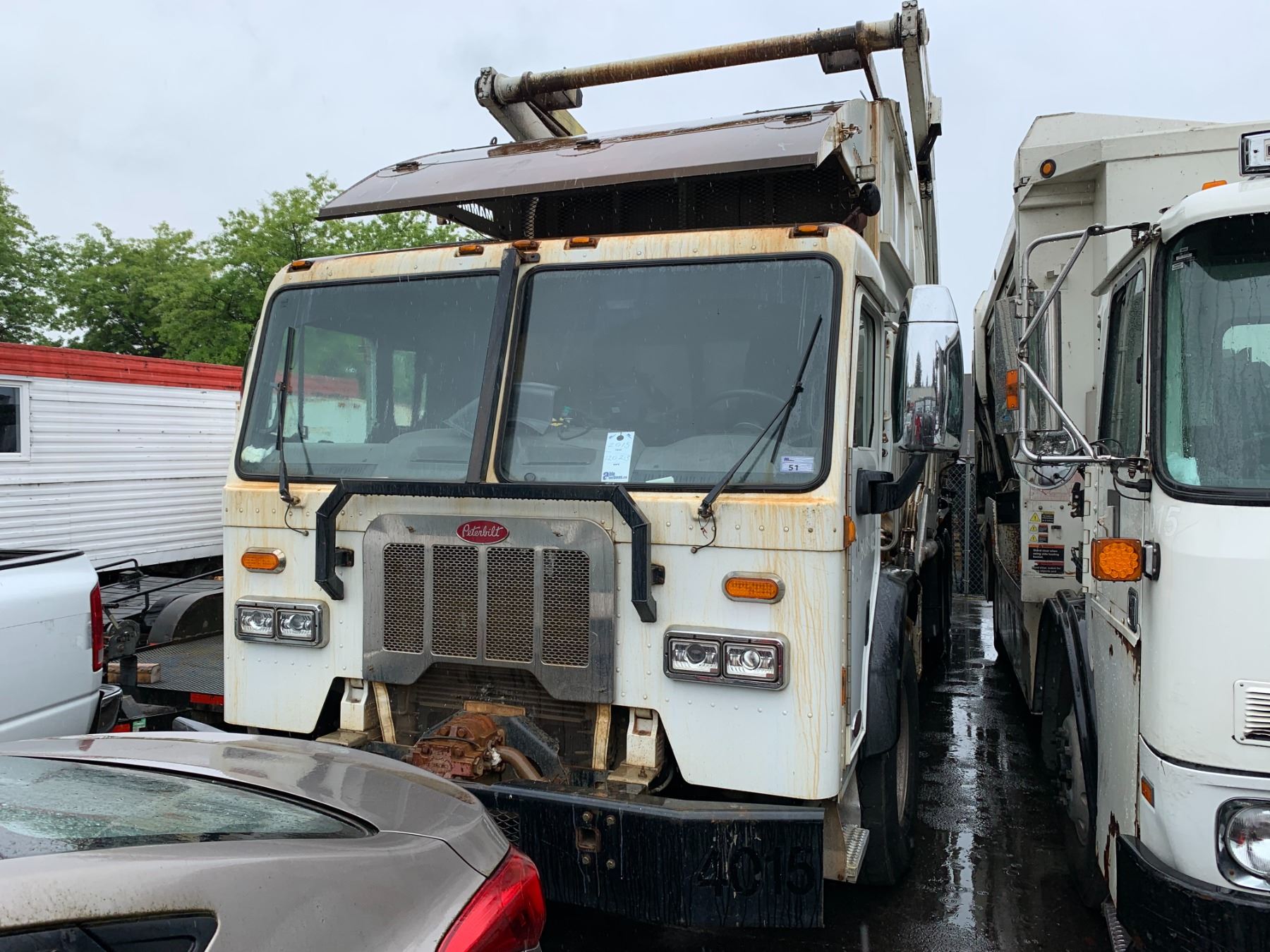 2015 PETERBILT PB320 PACCAR, 2DR GARBAGE TRUCK, WHITE, VIN 3BPZLJ0X7FF289969, 120,213 KMS, DIESEL, PX-9, AUTO, X-CITY, KEYS, STARTS, MOMMOTH 2 FORK 40 FEL TOP LOAD GARBAGE BOX, SINGLE DRIVE, AIR BRAKES, RD, NBC, TW, AC, *HAS REGISTRATION* NO ICBC DECLARATIONS